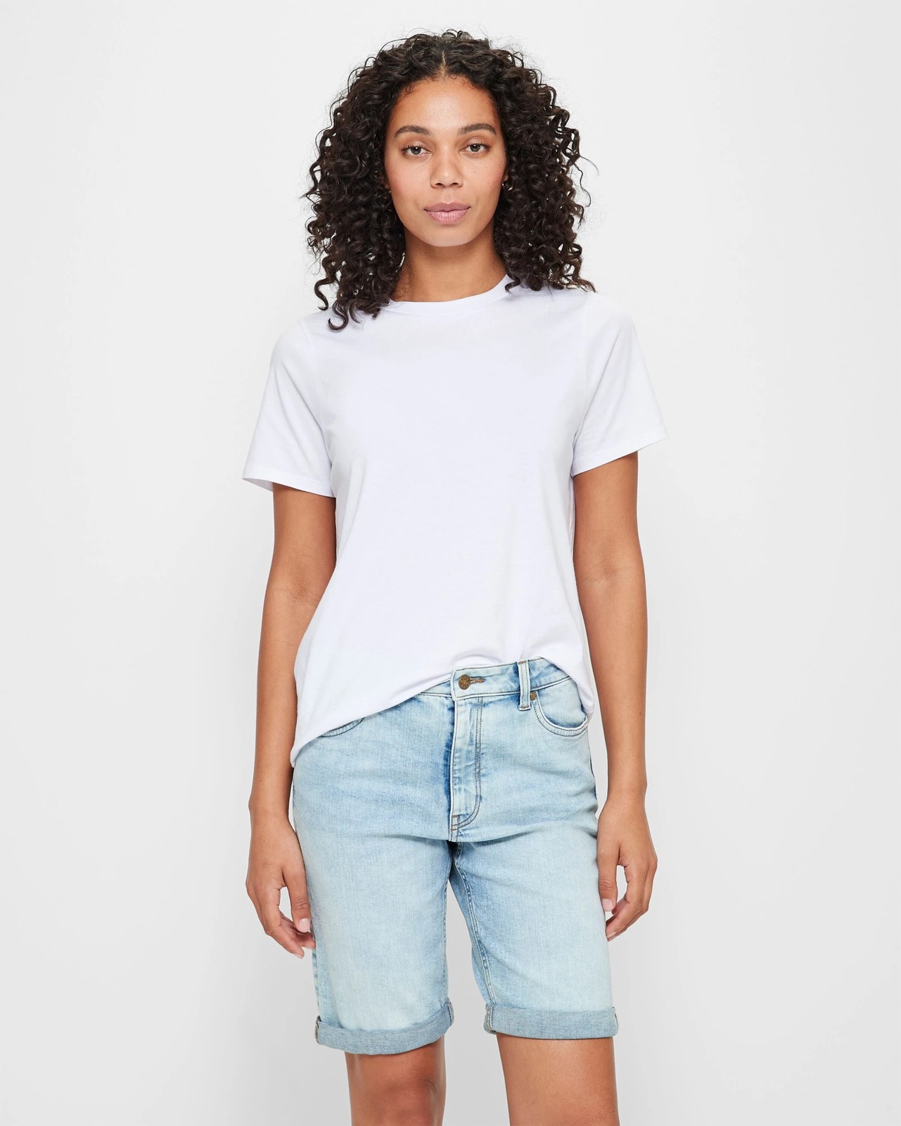 Step into style with our Classic Bermuda Denim Shorts. Crafted from a cotton-rich blend with added stretch, these shorts offer unrivalled comfort and durability. Featuring recycled materials, the regular fit, high-waisted design with a structured waistband and belt loops ensures a flattering silhouette. The front DENIM embossed button and zip fly closure adds a touch of sophistication, while the classic five-pocket styling and cuffed straight hemline provide a timeless look. Elevate your wardrobe with these mid-length shorts.