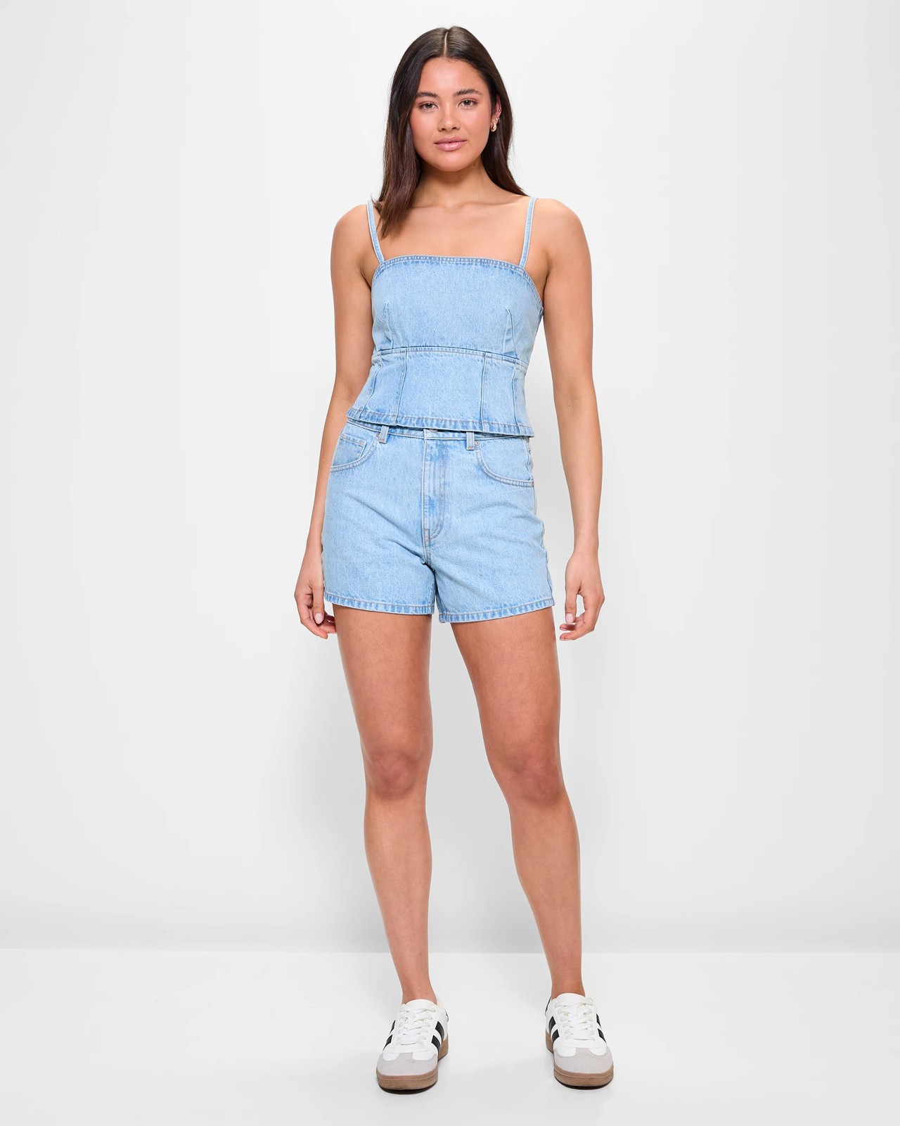 Experience the timeless charm and comfort with Lily Loves Classic Denim Shorts. Made from breathable cotton, these shorts keep you at ease all day long. The light blue wash ensures versatility, making it easy to pair with any top. Featuring a structured waistband, handy front button, zip fly and classic five-pocket design, they combine style and practicality. Perfect for casual outings, these shorts are ready to become a staple in your wardrobe. Don't wait – enhance your collection now!
