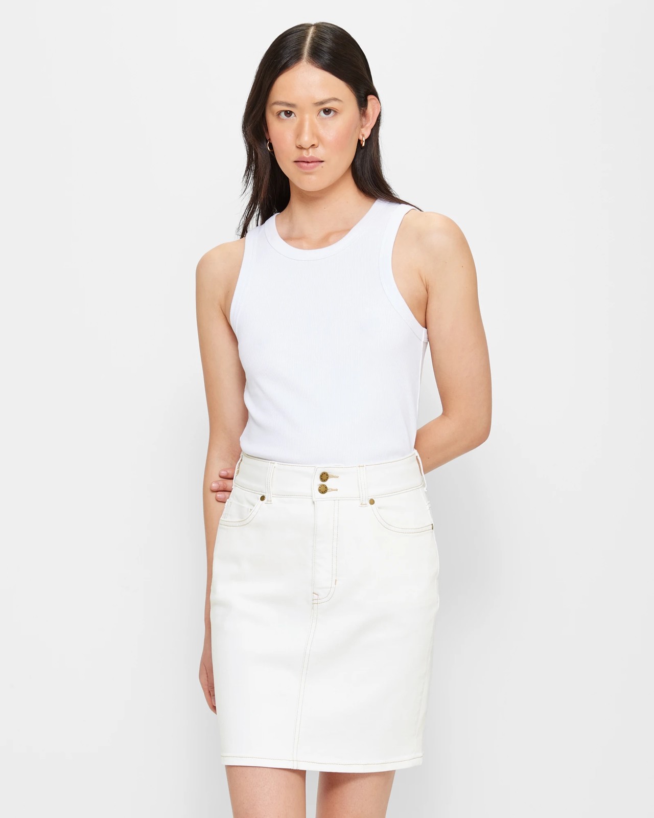 Get out and about in the must have Shape Your Body classic denim skirt - on trend for this season. It has a short length, a classic 5 pocket design for all of your essentials and a classic straight cut to flatter your shape.