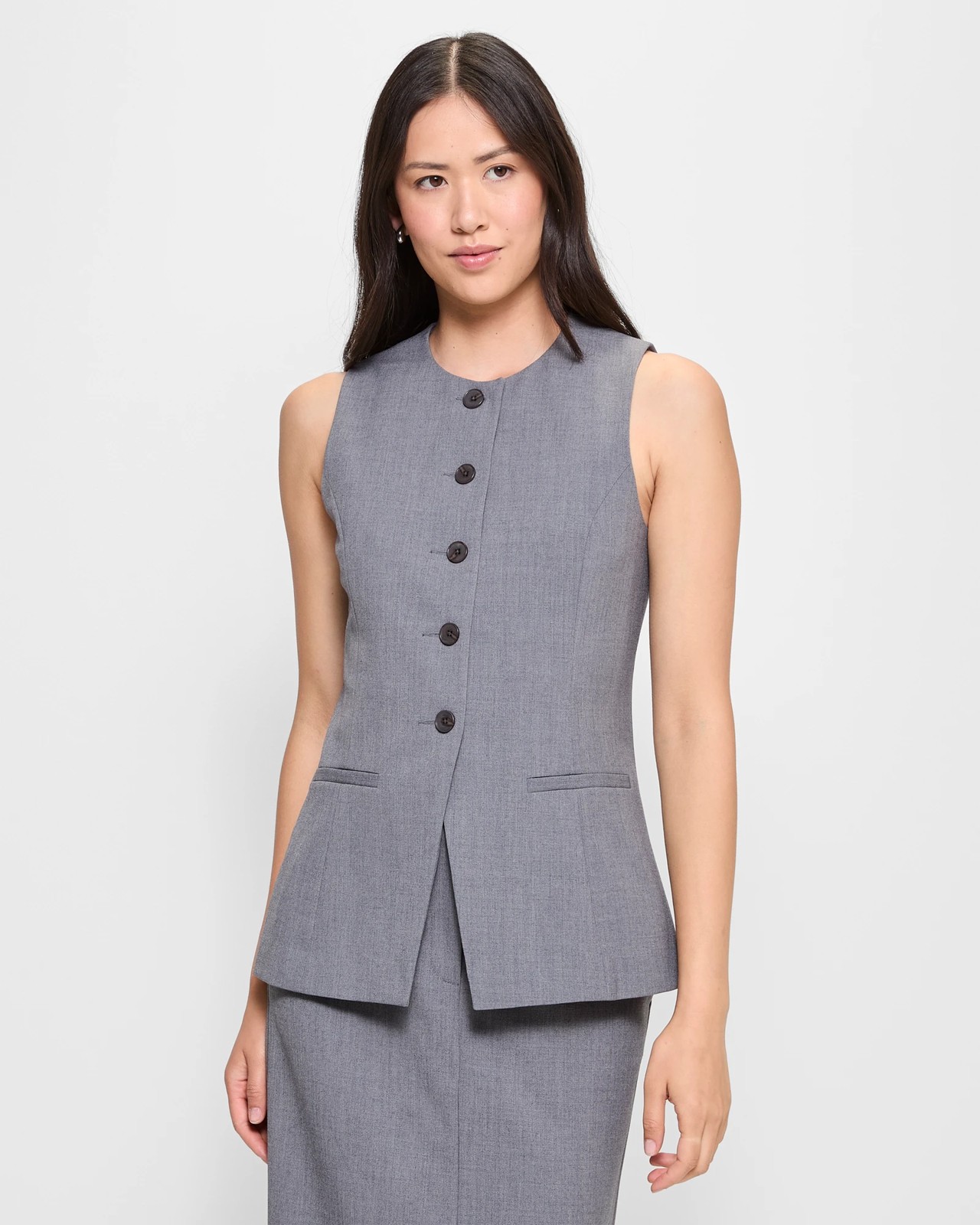 This Classic Longline Waistcoat offers a blend of style and comfort. The polyester and viscose mix, with added stretch elastane, ensures a comfortable fit throughout the day. The piece features a textured design with a round neckline, a buttoned front, and mock front pockets. Its sleeveless design and lined interior make it a quality addition to your wardrobe. Perfect for various occasions, this waistcoat is a versatile must-have. Add it to your collection today.