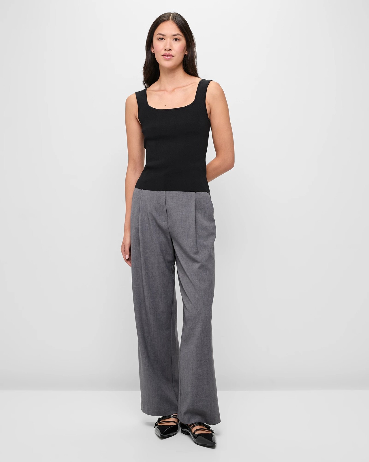 Front pleats down from waistband