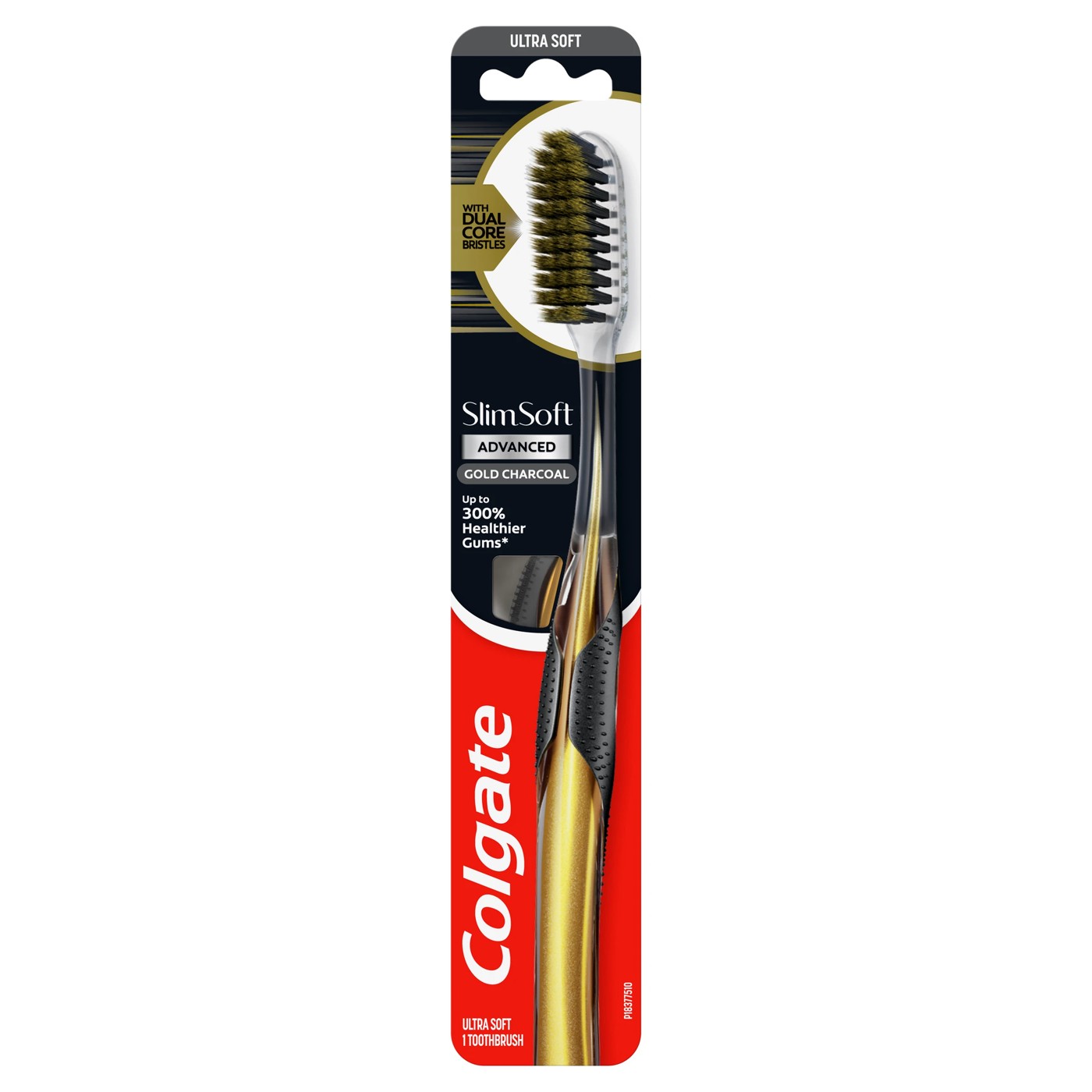 Colgate Slim Soft Advanced Charcoal Manual Toothbrush is clinically proven to make gums healthier*.The innovative dual core bristles have a strong base and <0.01mm ultra-soft slim tips, made for deep, yet gentle cleaning.