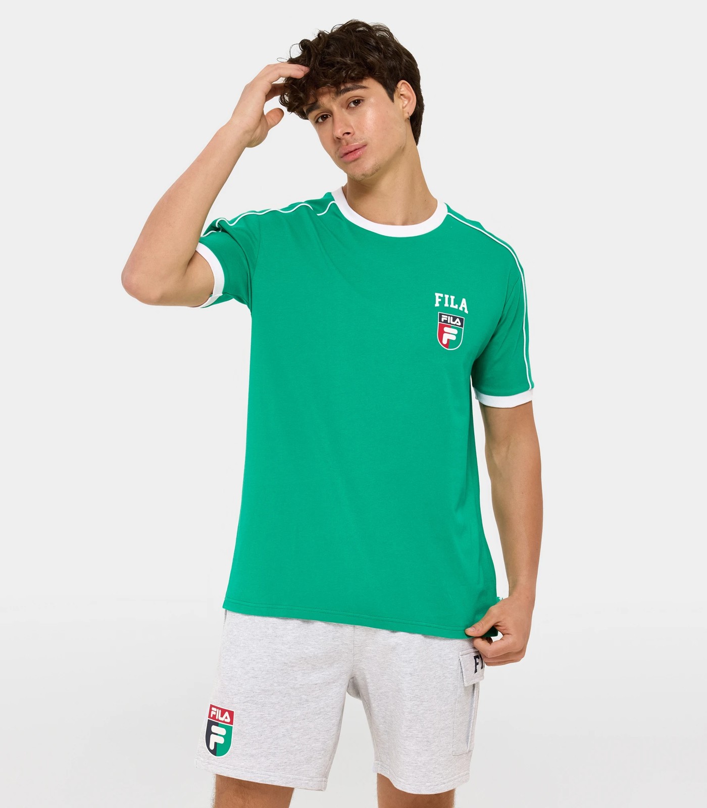 Introduce effortless style to your wardrobe with our Fila Men's Conor ringer t-shirt. Crafted from soft Cotton Jersey fabric, our tee ensures maximum comfort every time you wear it. This tee has an oversized fit and its standout feature is the Fila print to the left chest and the contrast rib and piping to the neck and sleeves. Elevate your casual look today with the Conor ringer tee.