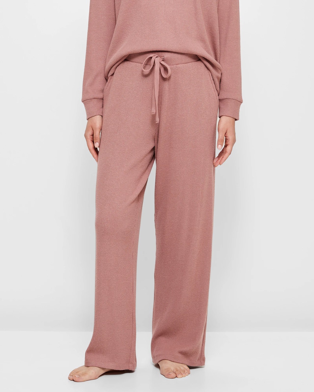 Experience ultimate comfort and cosiness with our Cosy Pyjama Sleep Pants. Crafted from a luxurious blend of viscose and polyester, these sleep pants offer stretch for effortless movement and a regular fit. The all-over ribbed design adds a touch of style, while the soft and cosy fabric ensures a peaceful night's sleep. Featuring a thick flat elastic waistband with drawstring and convenient side pockets, these pants are as functional as they are comfortable. The wide leg cut and straight hemline give them a chic and relaxed look. Complete your sleepwear collection by pairing these pants with our matching sleep top (sold separately). Treat yourself to a sublime sleep experience today!
