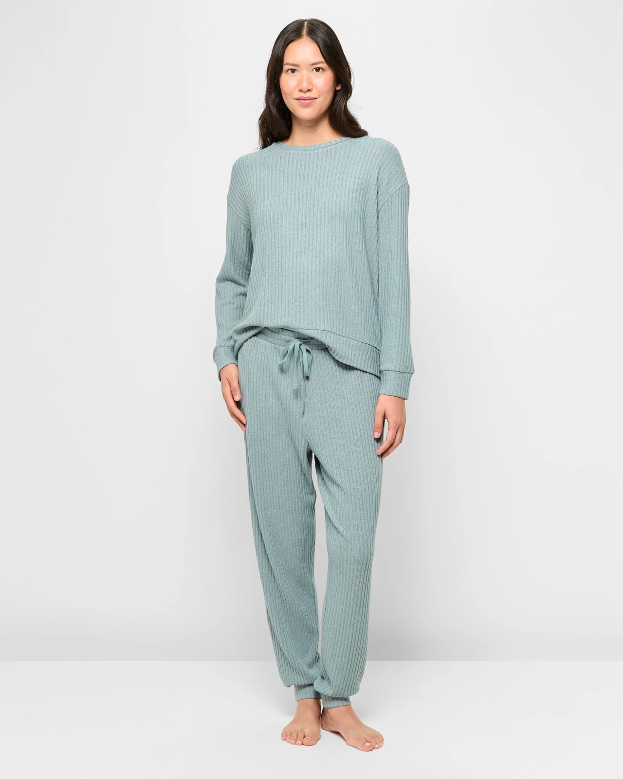 Experience the ultimate comfort with our Cosy Rib Knit Sleep Jogger Pants. Made from a soft viscose/polyester blend with a touch of stretch elastane, these joggers offer supreme ease for lounging or sleeping. The ribbed knit design and green marle colour bring a stylish flair to your nightwear, while the flat elastic waistband with drawstring ensures a perfect fit. The side seam pockets and tapered cut leg with thick cuffed hem add practicality and comfort. Discover unparalleled relaxation in these sleep joggers, and enhance your night-time routine.