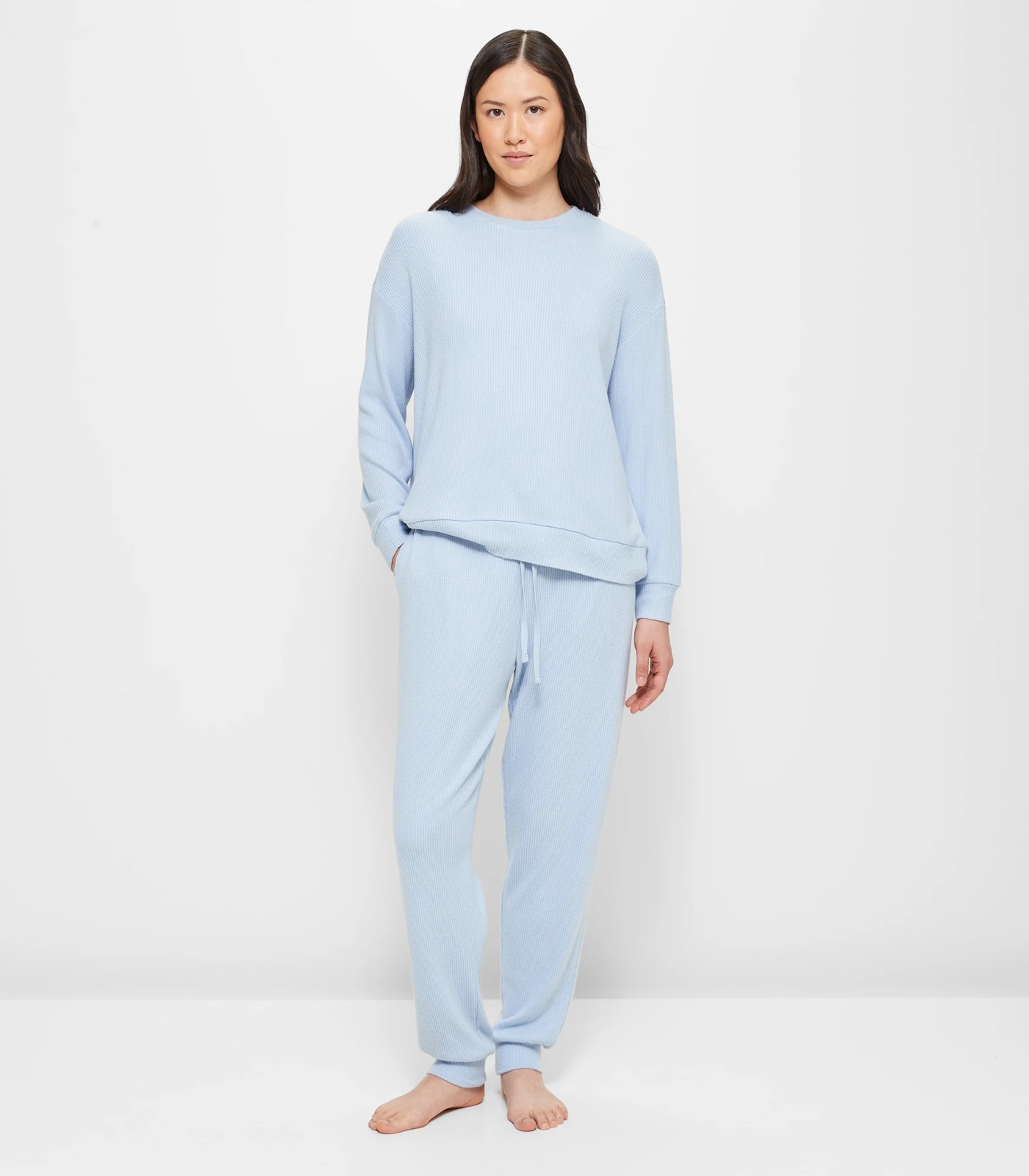 Experience ultimate comfort and relaxation with our Cosy Rib Sleep Pyjama Pants. Crafted from a luxurious blend of viscose and polyester, these pants offer a stretchy fit that ensures maximum comfort. The all-over ribbed design adds a touch of style and texture to your loungewear collection. The fabric is soft and cosy to the touch, providing a soothing feel against your skin. With a regular fit and ancle length, these pants offer a relaxed silhouette. The thick flat elastic waistband with drawstring ensures a secure and adjustable fit. The side seam pockets add convenience, while the straight legs and thick cuffs give these pants a classic look. Treat yourself to the ultimate comfort with our Cosy Rib Sleep Pyjama Pants.