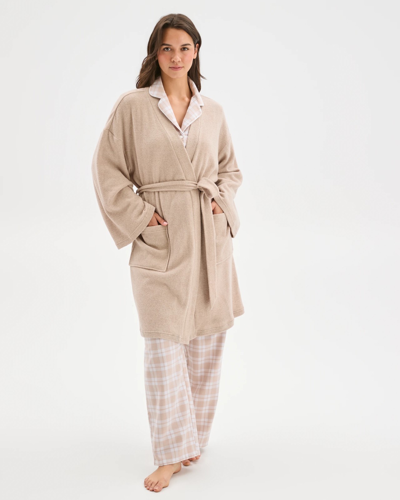 Discover ultimate relaxation in the Cosy Short Sleep Robe, designed to help you unwind in total comfort after a busy day. With its open front style and easy-to-wear short length, slipping it on feels like a gentle, soothing treat. The removable tie waist belt lets you adjust the fit just how you like, while front pockets offer a handy spot for your small essentials. Long sleeves keep you extra snug, and the regular fit provides a relaxed feel without being bulky. The straight hemline adds a touch of simplicity, making this robe perfect for lounging or your night-time routine. Bring home the comfort you deserve—choose the Cosy Short Sleep Robe today.