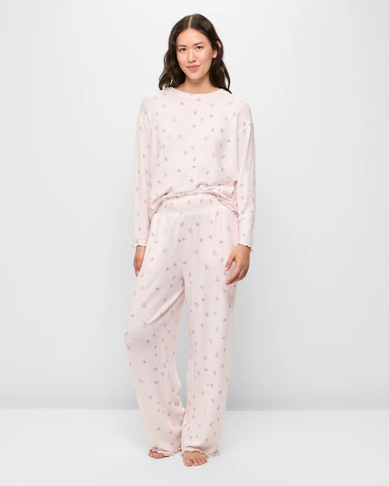 Cosy Slub Knit Sleep Pants Imagine slipping into these soft and lightweight sleep pants after a long day. The stretchy viscose and polyester blend ensures comfort and a soft feel against your skin. Featuring a relaxed fit and a stylish mid-rise waist with a thick, shirred elastic waistband, these sleep pants are designed to provide just the right amount of style and comfort. Whether you're lounging around the house or getting ready for bed, these pants are a perfect choice and a must-have in your nightwear collection. The wide leg cut, full length, and chic lettuce hemline give these pants a finishing touch. Plus, with convenient side seam pockets, you can keep small essentials handy. Treat yourself to comfort and order yours today!