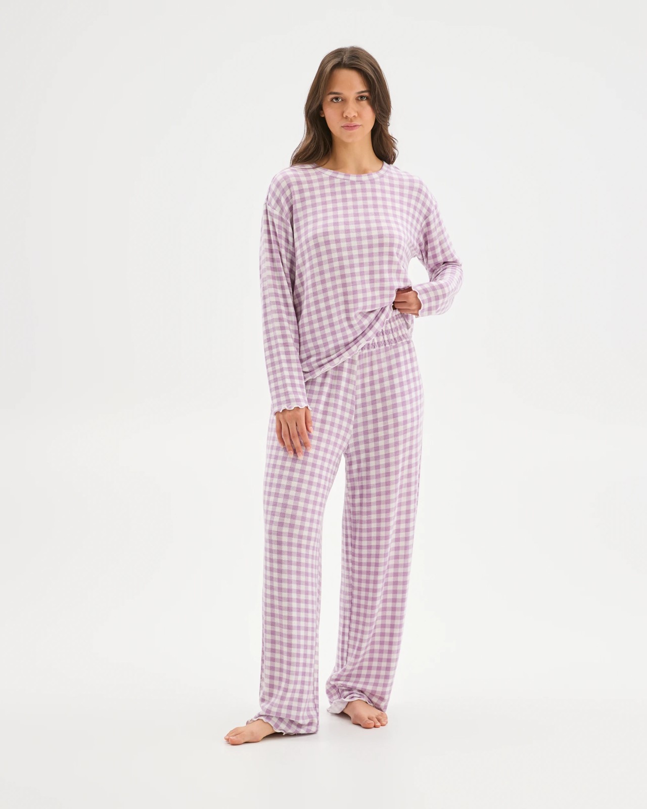 Settle into pure comfort with the Cosy Slub Knit Pants, thoughtfully designed for your moments of rest. These full-length trousers offer a luxuriously soft brushed finish and effortless stretch, delivering a relaxed, regular fit for every day. Featuring a thick, shirred elastic waistband and a convenient pull-on design, slipping into relaxation has never been easier. Store your must-haves close by with handy side welt pockets and enjoy the carefree charm of wide legs and a distinctive lettuce hemline. Whether you’re winding down after a busy day or embracing a quiet morning, these knit pants promise soothing ease. Upgrade your downtime with comfort you’ll love—treat yourself to a pair today.