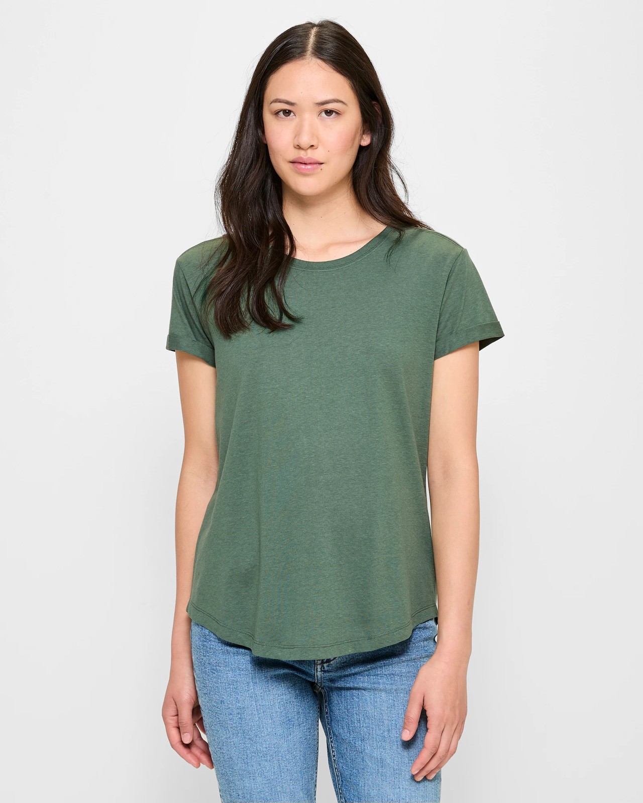 Look and feel your best in the new Relaxed Crew T-Shirt by Target Woman. Made with a cotton/modal blend, this t-shirt is designed to keep you comfortable throughout the day. The relaxed fit and classic crew neckline are perfect for everyday wear, while the short sleeves with turn over cuffs and curved hemline add a lovely finishing touch Whether you’re lounging at home or out running errands, this t-shirt will help you stay relaxed and stylish!