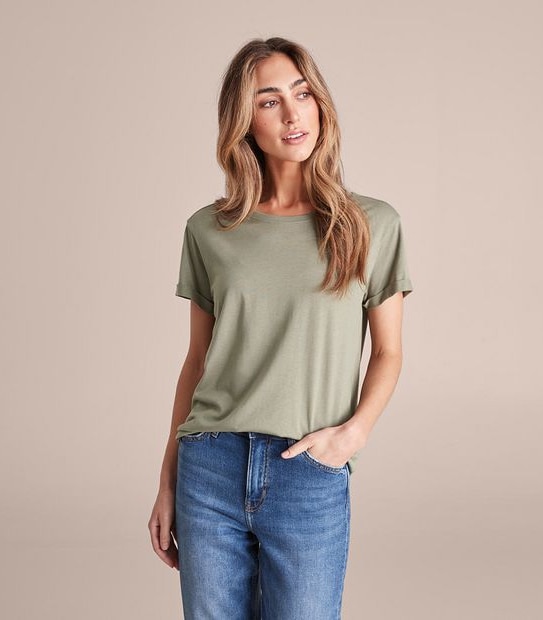 The cotton rich relaxed tee is an excellent everyday tee with cotton rich material for flow and breathability, has a crew neckline and a curved hemline for a great shape.