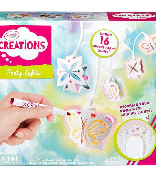 Give your bedroom that stand out feature with your very own Crayola Creations Party Lights. Simply mix and match a range of paper lanterns shapes and inserts, then decorate them using the markers to create fun, colourful party lights unique to you!