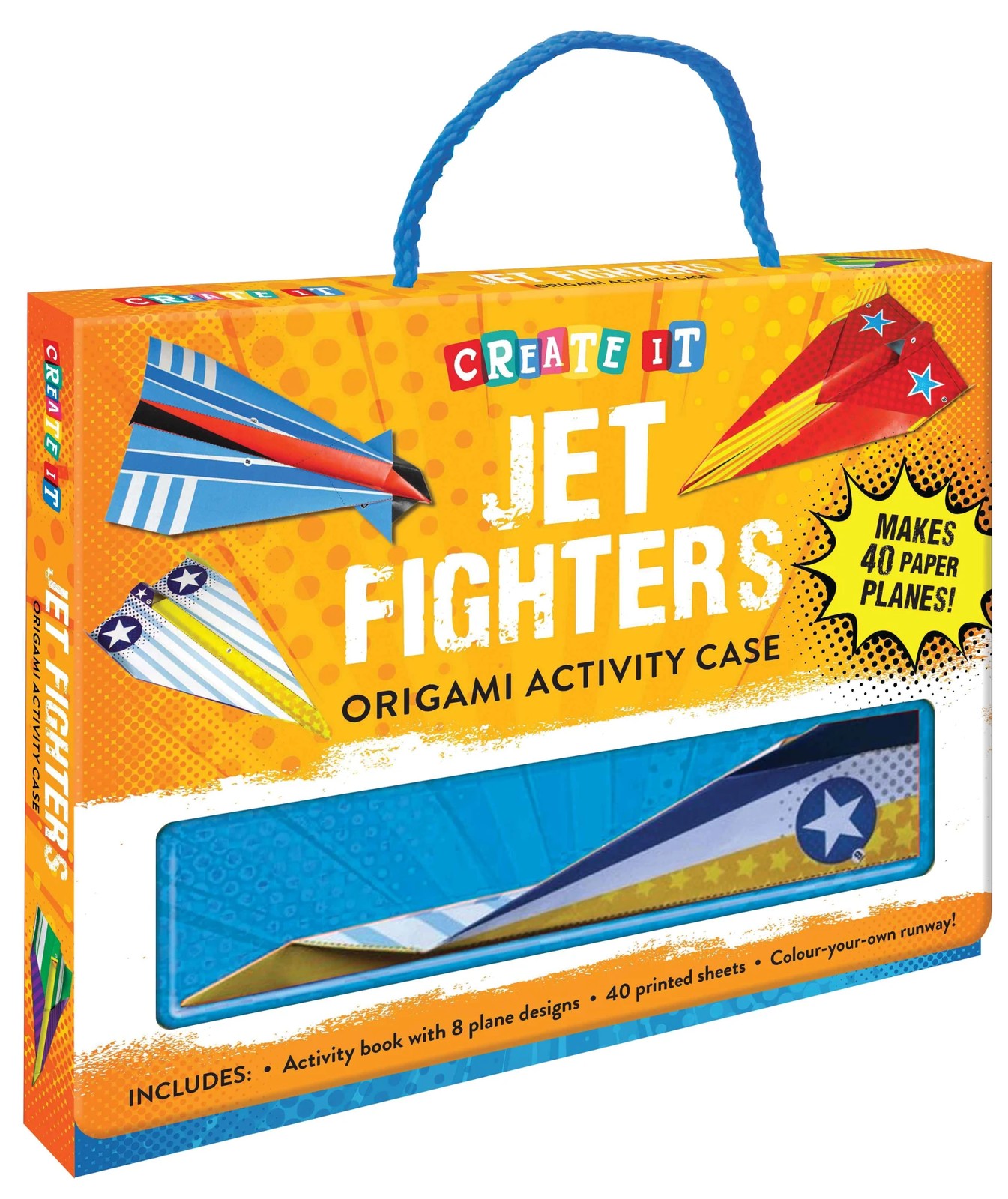 Also included is a 16-page book with detailed instructions on how to make your very own jet fighter paper planes, and a colour-your-own runway to land your planes on!
