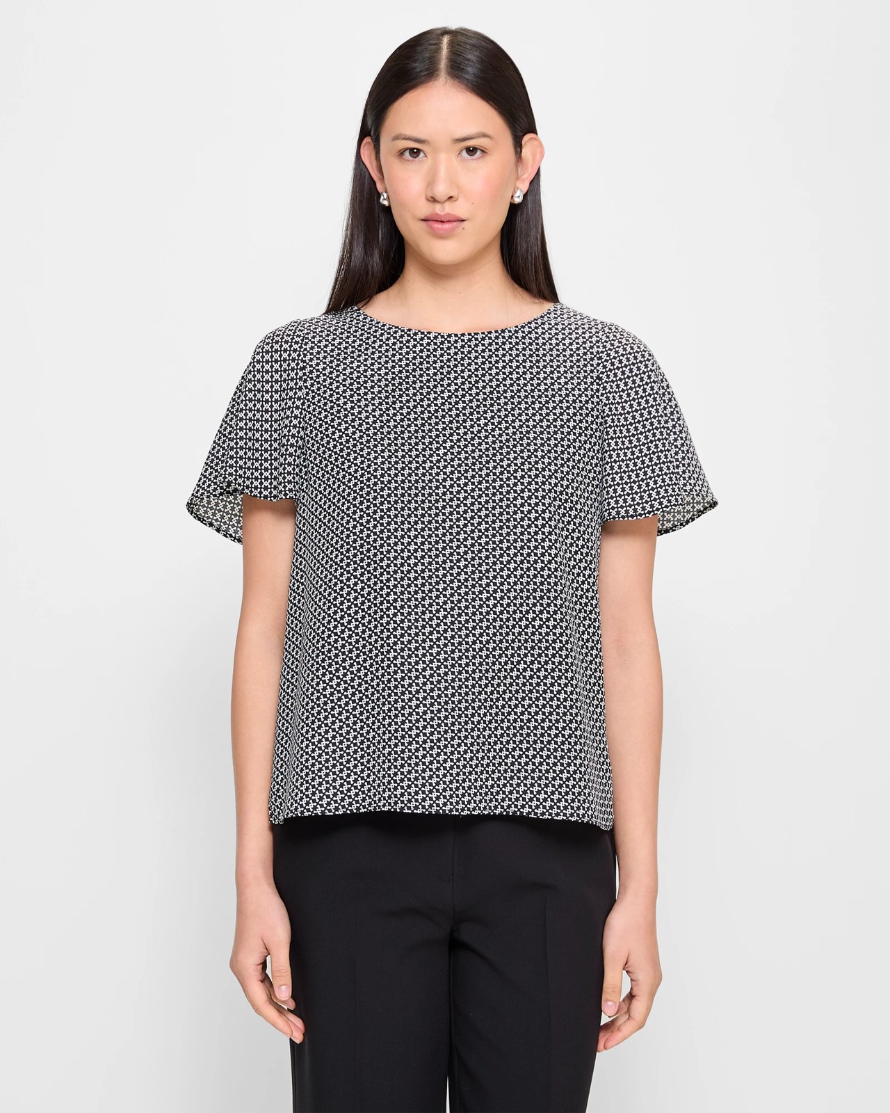 Experience a touch of elegance with the Preview Ella blouse, crafted to elevate your style effortlessly. The blouse features a soft polyester blend with recycled materials, ensuring a comfortable fit. Its inner lining provides a luxurious feel, while the crew neckline and short flutter sleeves add a chic touch. The blouse's regular fit and straight hemline offer versatility for various occasions. Upgrade your wardrobe with the timeless charm of the Preview Ella blouse today!