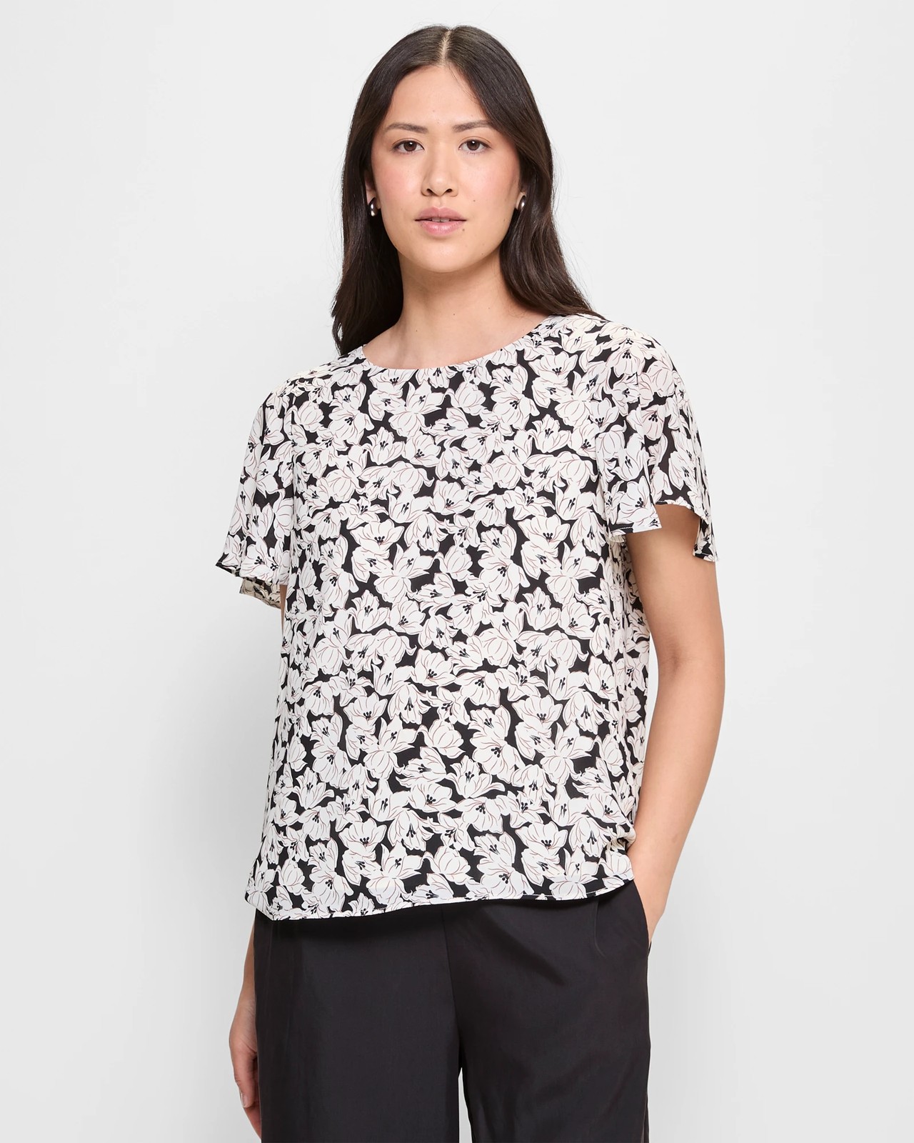 Experience a touch of elegance with the Preview Ella blouse, crafted to elevate your style effortlessly. The blouse features a soft polyester blend with recycled materials, ensuring a comfortable fit. Its inner lining provides a luxurious feel, while the crew neckline and short flutter sleeves add a chic touch. The blouse's regular fit and straight hemline offer versatility for various occasions. Upgrade your wardrobe with the timeless charm of the Preview Ella blouse today!