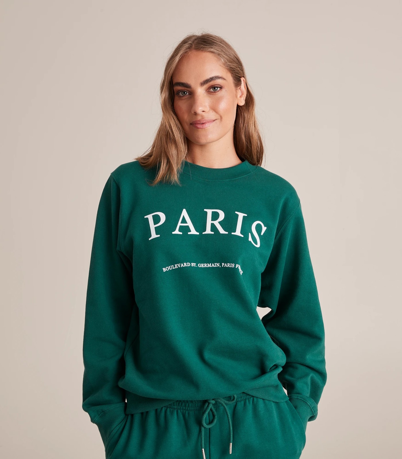 Bold chest print with wording PARIS BOULEVARD ST. GERMAIN, PARIS FRANCE