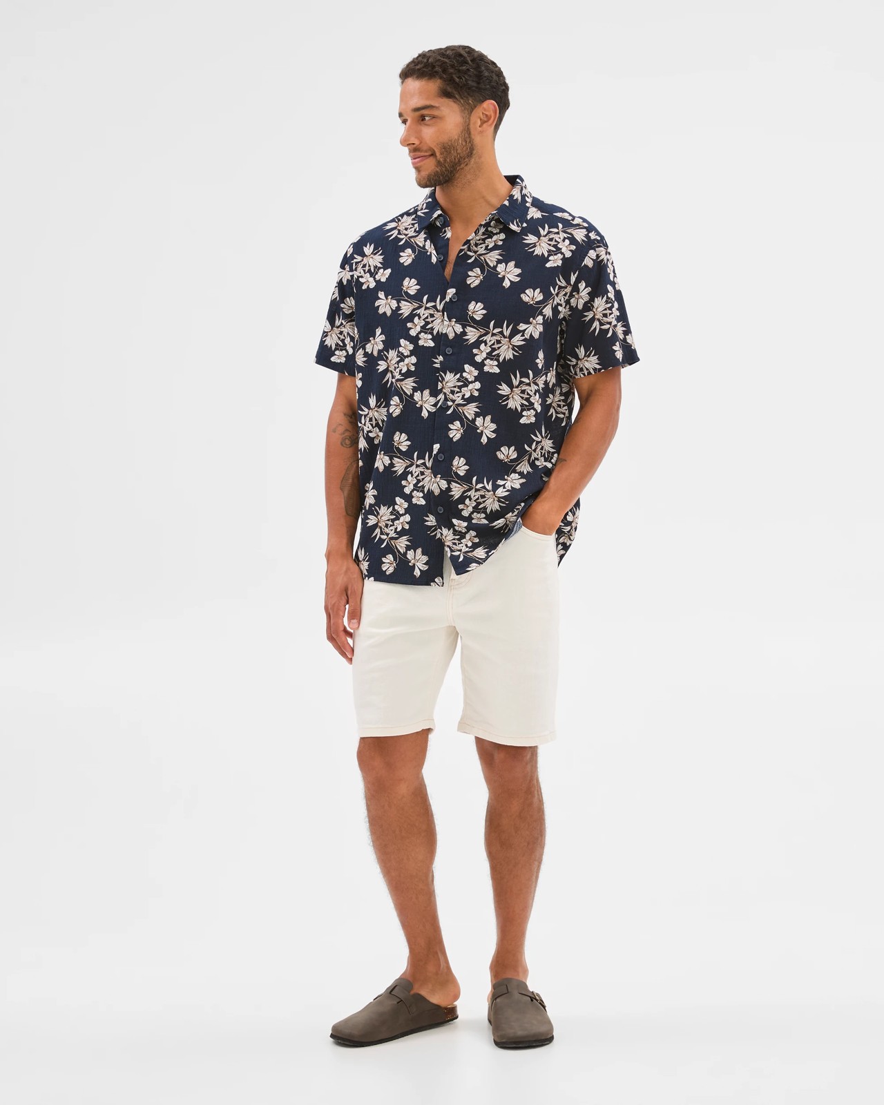 Introducing the Crinkle Floral Print Shirt, a must-have addition to your wardrobe that effortlessly combines style and comfort. This lightweight shirt is crafted from breathable cotton at 127gsm, making it perfect for warm weather occasions or casual outings. The all-over floral print adds a touch of vibrancy, ensuring you stand out while enjoying a relaxed fit. Featuring a classic collared neckline and short sleeves, this shirt is designed for versatility and ease of wear. Whether you're dressing it up for a picnic or keeping it casual on a weekend stroll, its button-through front and curved hemline offer a flattering silhouette. The upper back yoke with a center box pleat enhances mobility, providing a comfortable experience throughout the day. Pair this shirt with your favorite chinos or shorts for a laid-back yet stylish look. With the Crinkle Floral Print Shirt, you'll not only look good but feel confident in your attire. Embrace a fresh look this season and make this shirt your go-to piece for effortless, everyday style!