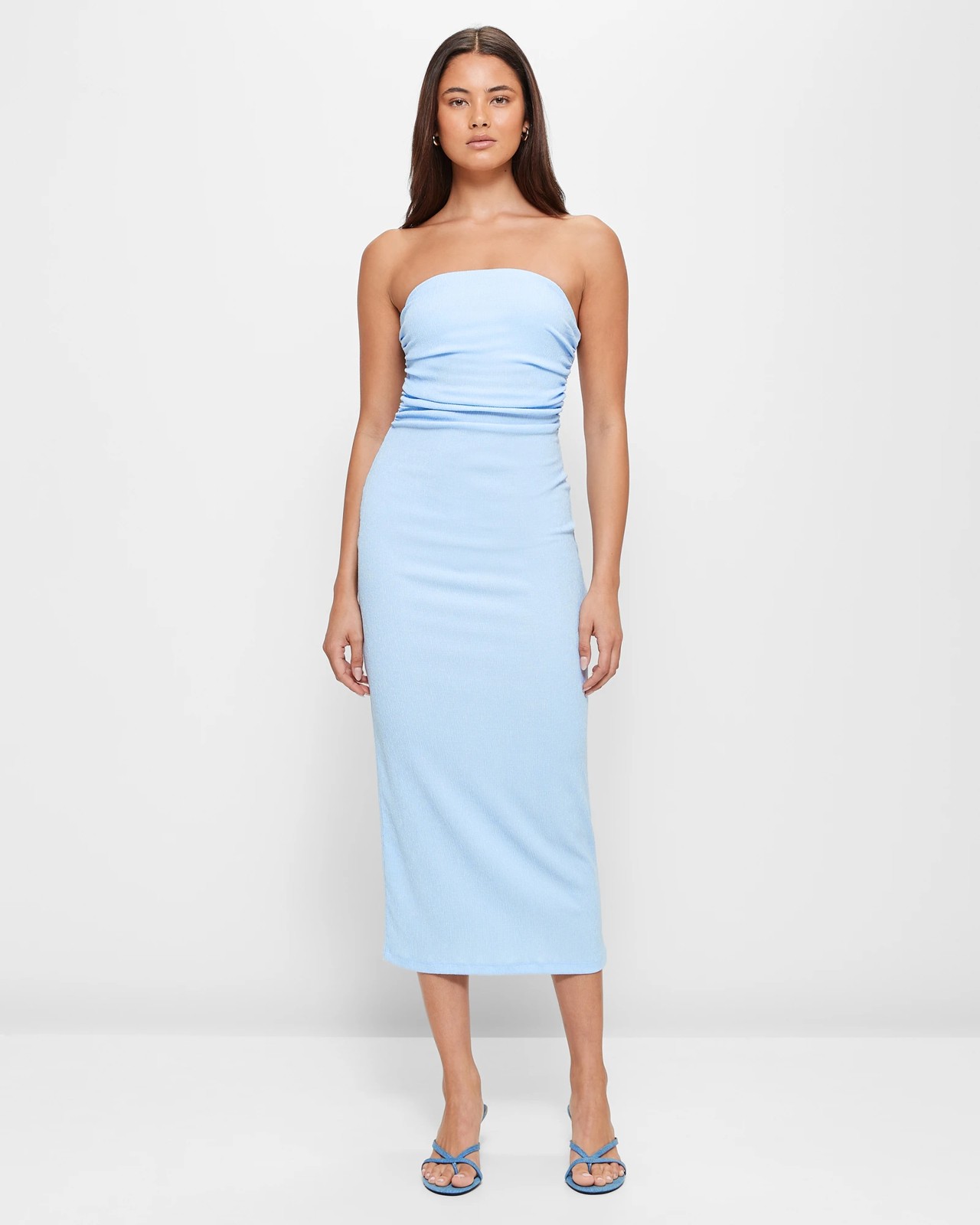 Introducing the Crinkle Gathered Side Tube Dress from the Lily Loves collection. Crafted from a premium blend of polyester and recycled materials, this dress offers the perfect balance of comfort and style. Its stretchy fabric ensures a slim fit while providing optimal comfort throughout the day. Designed with an all-over crinkle look, this dress stands out from the crowd. The straight neckline, inner elastic top with silicone details, and gathering down the sides add a touch of elegance. With its straight cut, straight hemline, and midi length, this dress is perfect for any occasion. Upgrade your wardrobe and feel confident in the Crinkle Gathered Side Tube Dress. Shop now!