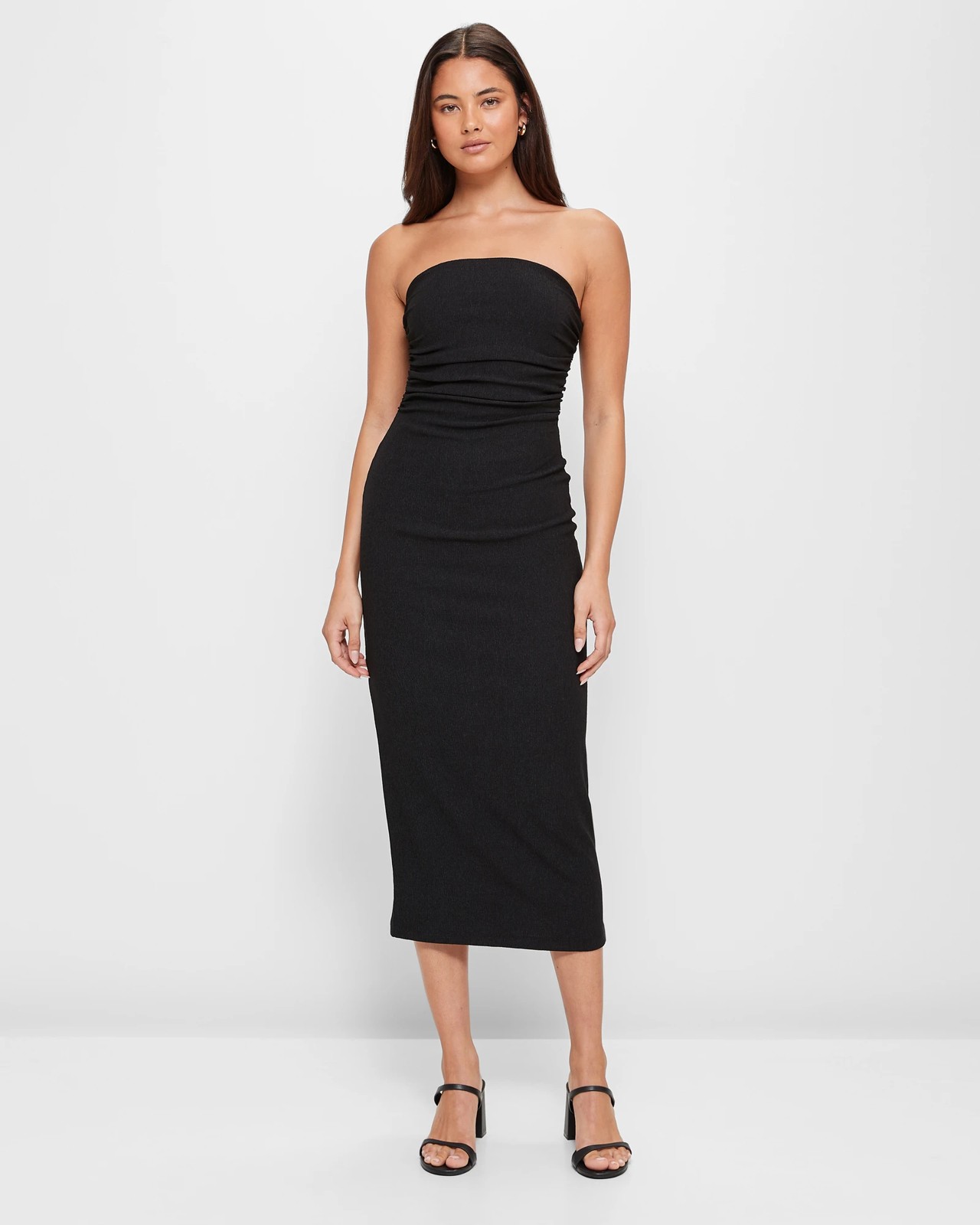 Introducing the Crinkle Gathered Side Tube Dress from the Lily Loves collection. Crafted from a premium blend of polyester and recycled materials, this dress offers the perfect balance of comfort and style. Its stretchy fabric ensures a slim fit while providing optimal comfort throughout the day. Designed with an all-over crinkle look, this dress stands out from the crowd. The straight neckline, inner elastic top with silicone details, and gathering down the sides add a touch of elegance. With its straight cut, straight hemline, and midi length, this dress is perfect for any occasion. Upgrade your wardrobe and feel confident in the Crinkle Gathered Side Tube Dress. Shop now!