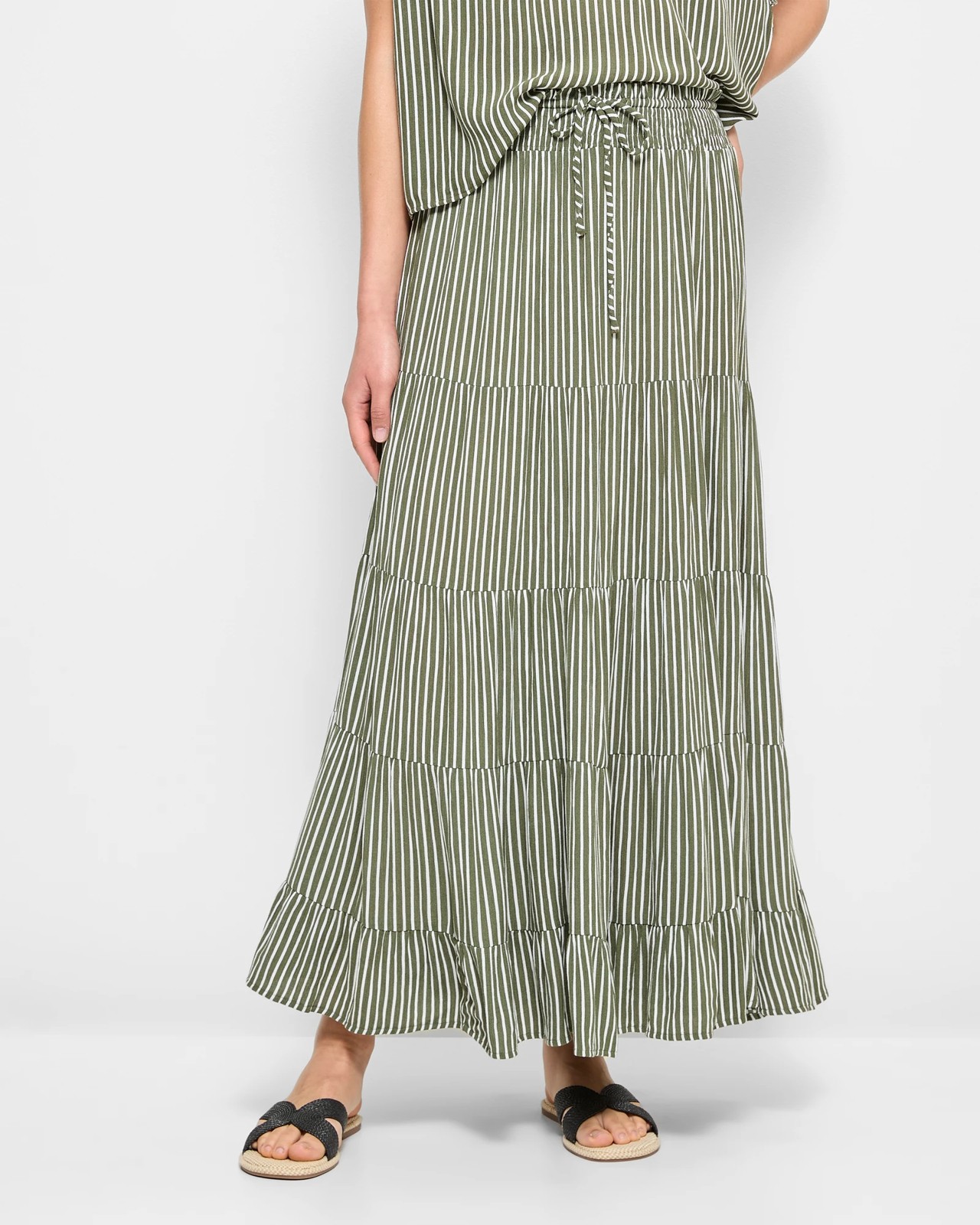 Step into style with our Crinkle Maxi Skirt. Made from soft, lightweight viscose, this skirt features a distinctive crinkle texture and a relaxed fit. The thick shirred elastic waistband ensures a snug fit, while the tiered panels add playful movement to your ensemble. Ideal for both casual outings and more dressed-up occasions, this skirt will become your favourite piece. Pair it with the matching top to complete the look (sold separately).