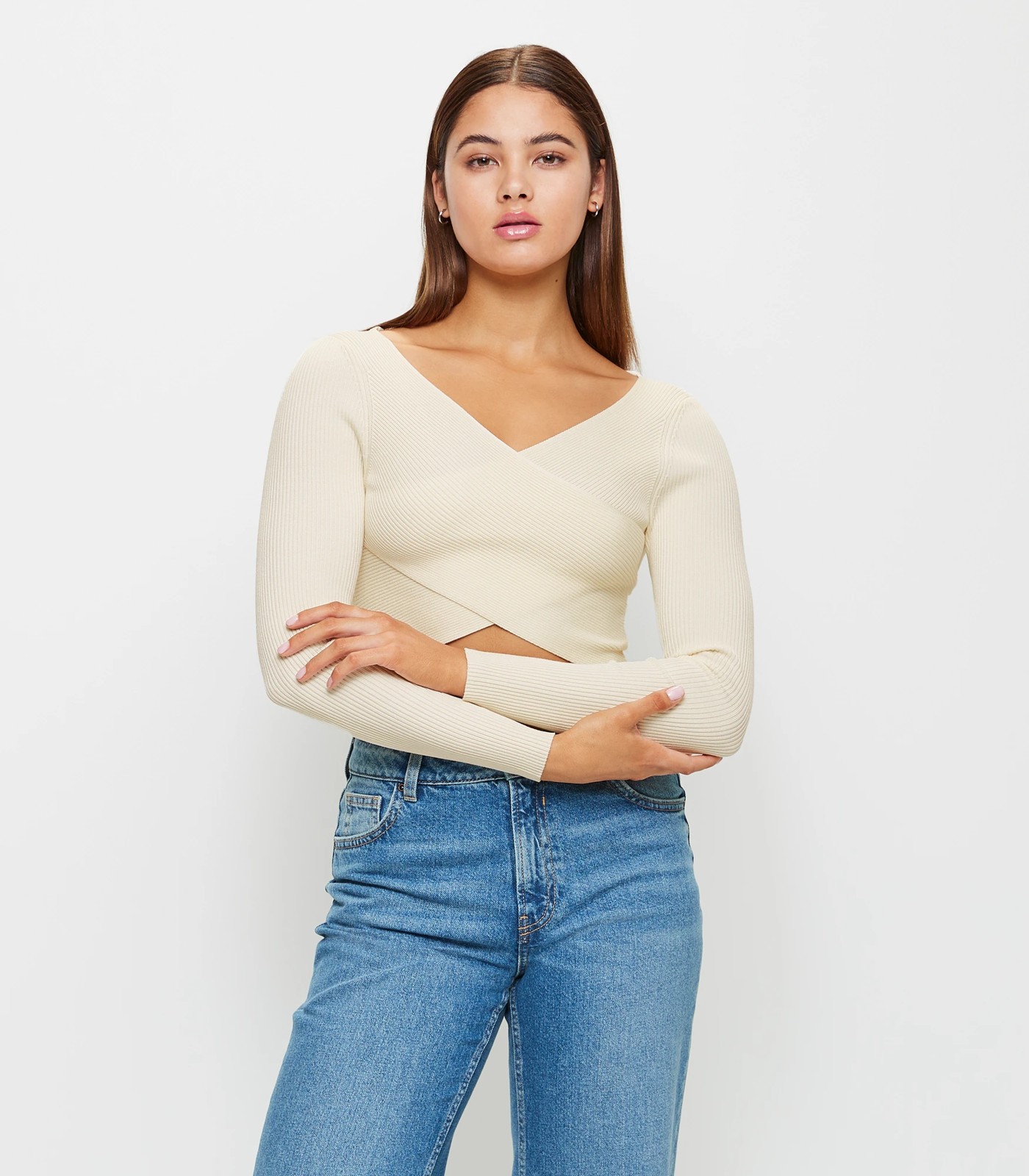 A cute top for everyday wear that can be dressed up or down, the Lily Loves criss cross top has an all over ribbed design, a criss cross front and long sleeves.