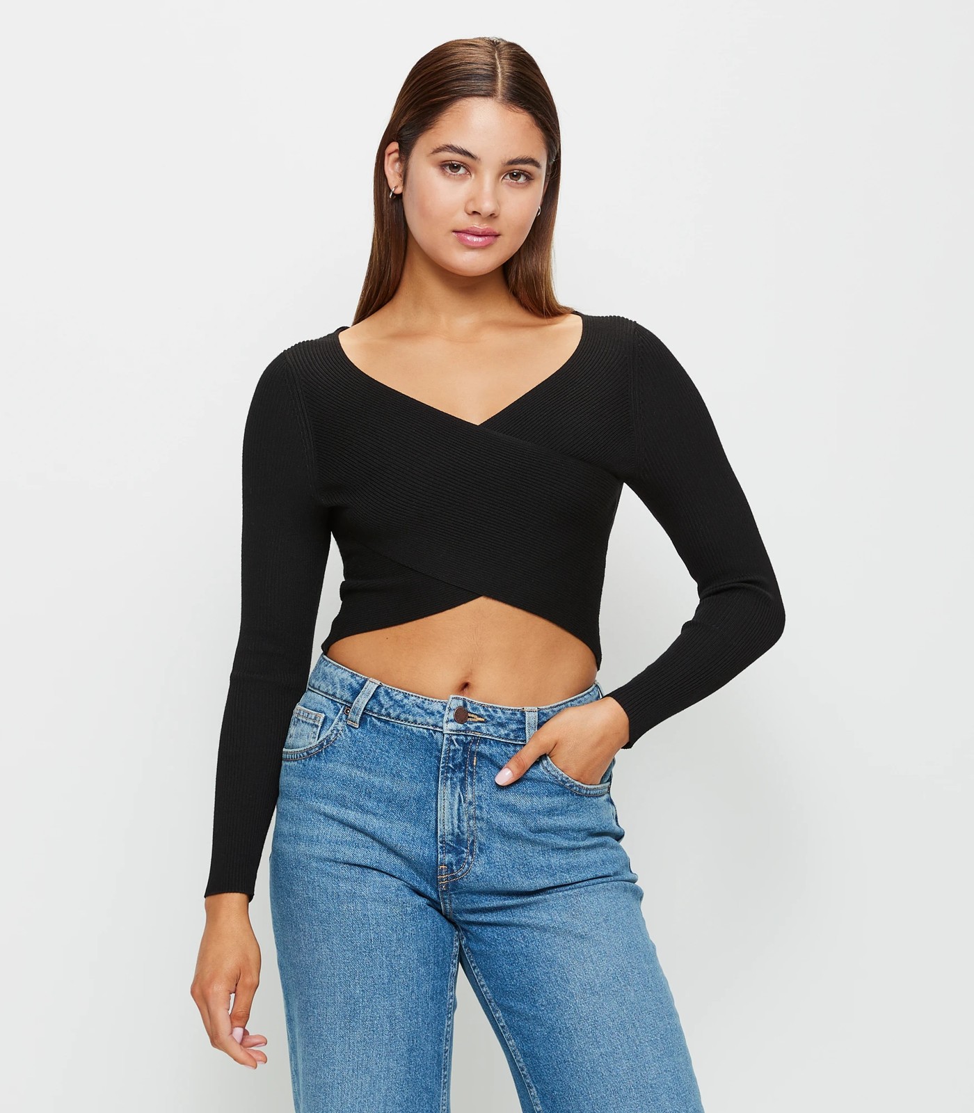 A cute top for everyday wear that can be dressed up or down, the Lily Loves criss cross top has an all over ribbed design, a criss cross front and long sleeves.