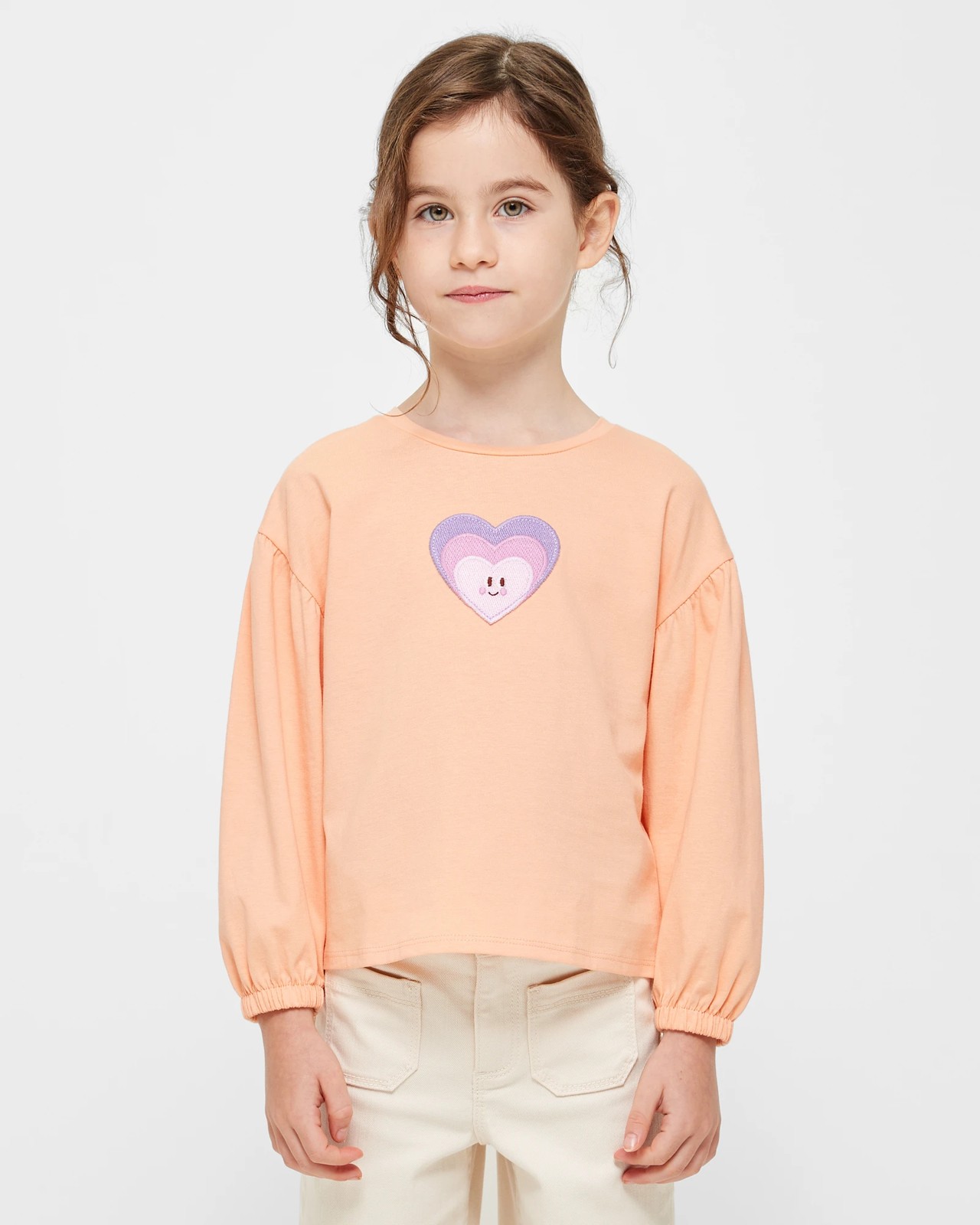 Introducing our Crochet Print Long Sleeve Top, a perfect addition to any little girl's wardrobe. Made from high-quality cotton, this top offers a comfortable and regular fit. The crew neck adds a touch of style, while the gathered shoulders and elastic cuffs provide a unique and trendy look. The crochet print design on the front adds a cute and feminine touch. With its long sleeves, this top is perfect for all seasons. Whether for a casual day out or a special occasion, this top will make a statement and bring a smile to your little girl's face. Shop now and dress her in style!