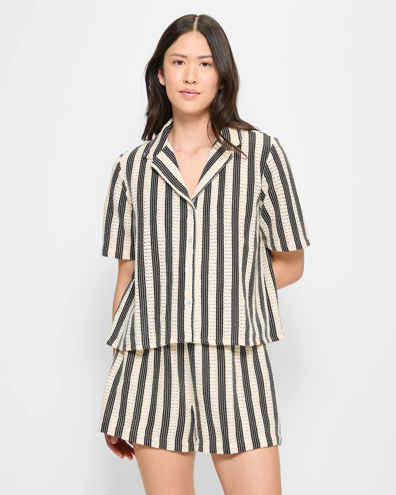 Embrace the warm weather with our women's crochet shorts, made from a blend of cotton and polyester. Showcasing a beautiful crochet design with a comfortable inner lining, these shorts offer a regular fit for everyday wear. The neutral black stripes provide a classic look, while the thick elastic waistband ensures a secure and comfy fit. Perfect for casual outings, these shorts are an essential for your summer collection.