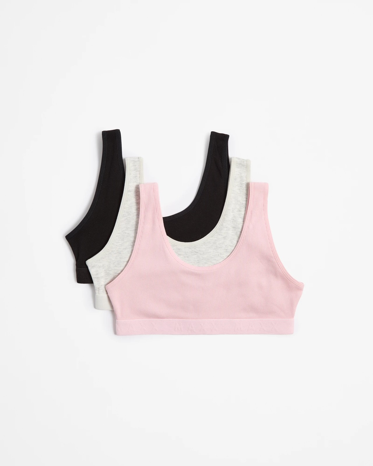 Experience comfort with our Girls Crop Tops 3 Pack by Maxx. Made from a soft cotton blend that stretches to fit perfectly, these crop tops are designed for everyday wear. The ribbed texture and assortment of colours add a touch of style, while the Maxx elastic waistband ensures a snug fit. Plus, the tag-free design means she'll stay comfortable all day long. Make these stylish crop tops a staple in her wardrobe now!