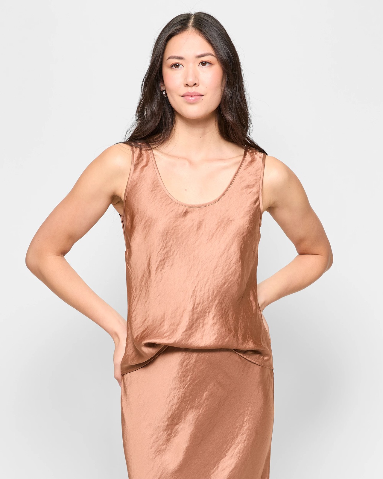 The Crushed Satin Cami is your ideal choice for both everyday style and those moments when you want to feel just a little bit special. With its luxurious polyester and viscose blend, this cami delivers a softly rippled satin appearance that is gentle on your skin. Featuring a scoop neckline and sturdy shoulder straps, it offers reliable comfort along with an easy fit. The chest seam details and gently curved hem add thoughtful touches for a polished finish. Whether layered under a jacket or worn on its own, this sleeveless top makes getting dressed a joy. Add it to your wardrobe and let every day feel a touch more refined.