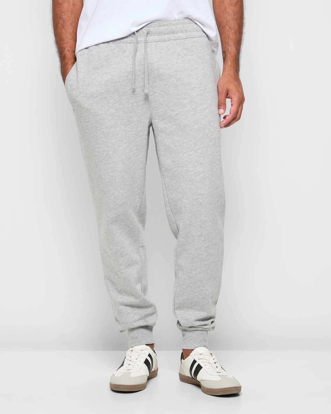 Discover your new favourite trackpants with our cuffed marle version. A cotton and polyester blend provides the ultimate in comfort, while the fleece lining keeps you warm. These trackpants feature a subtle marled design, a thick elastic waistband with a convenient drawstring, and a mock fly front for added style. The side seam pockets and an open back pocket offer practical storage solutions. With a straight cut leg and ribbed cuffs, these full-length trackpants are perfect for any casual occasion. Try them on and feel the difference.