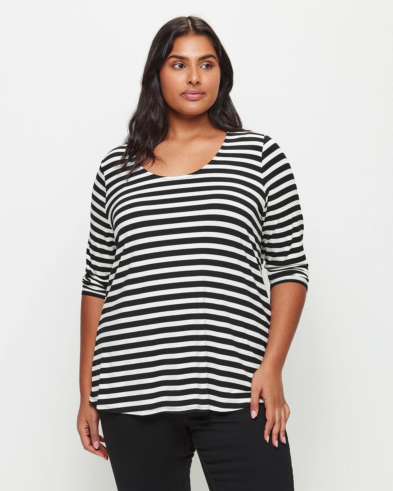The perfect everyday wardrobe basic that is great for wearing everyday, the Curve 3/4 sleeve tee is also great for layering. It has a lightweight stretch fabrication, a scoop neckline and a relaxed fit for comfort.