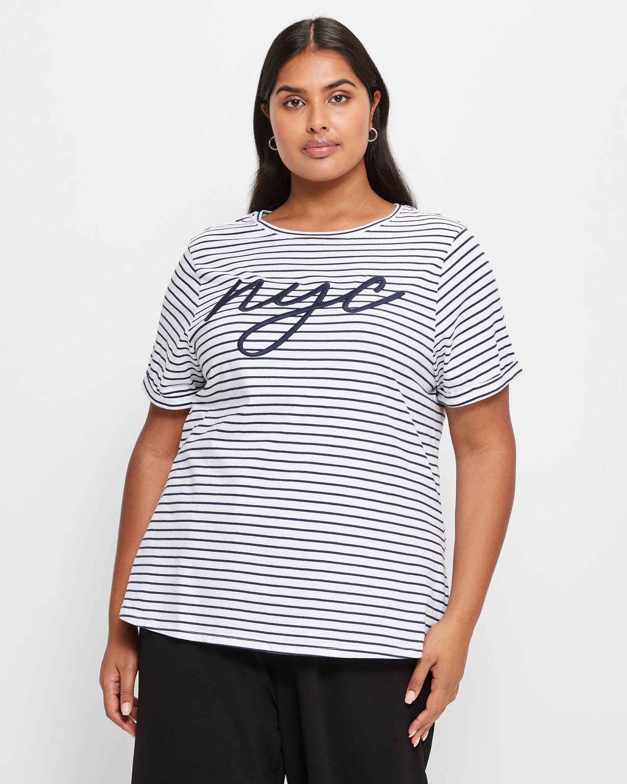 This Curve Graphic T-Shirt from Target is the perfect addition to your summer wardrobe! It's made from a breathable cotton fabrication for all-day comfort and features a regular fit, crew neckline, short roll cuff sleeves and a straight hemline. The bold chest print adds the perfect finishing touch to this stylish piece. Perfect for keeping cool during those hot summer days, you won't want to miss out on this classic tee from Target Curve.