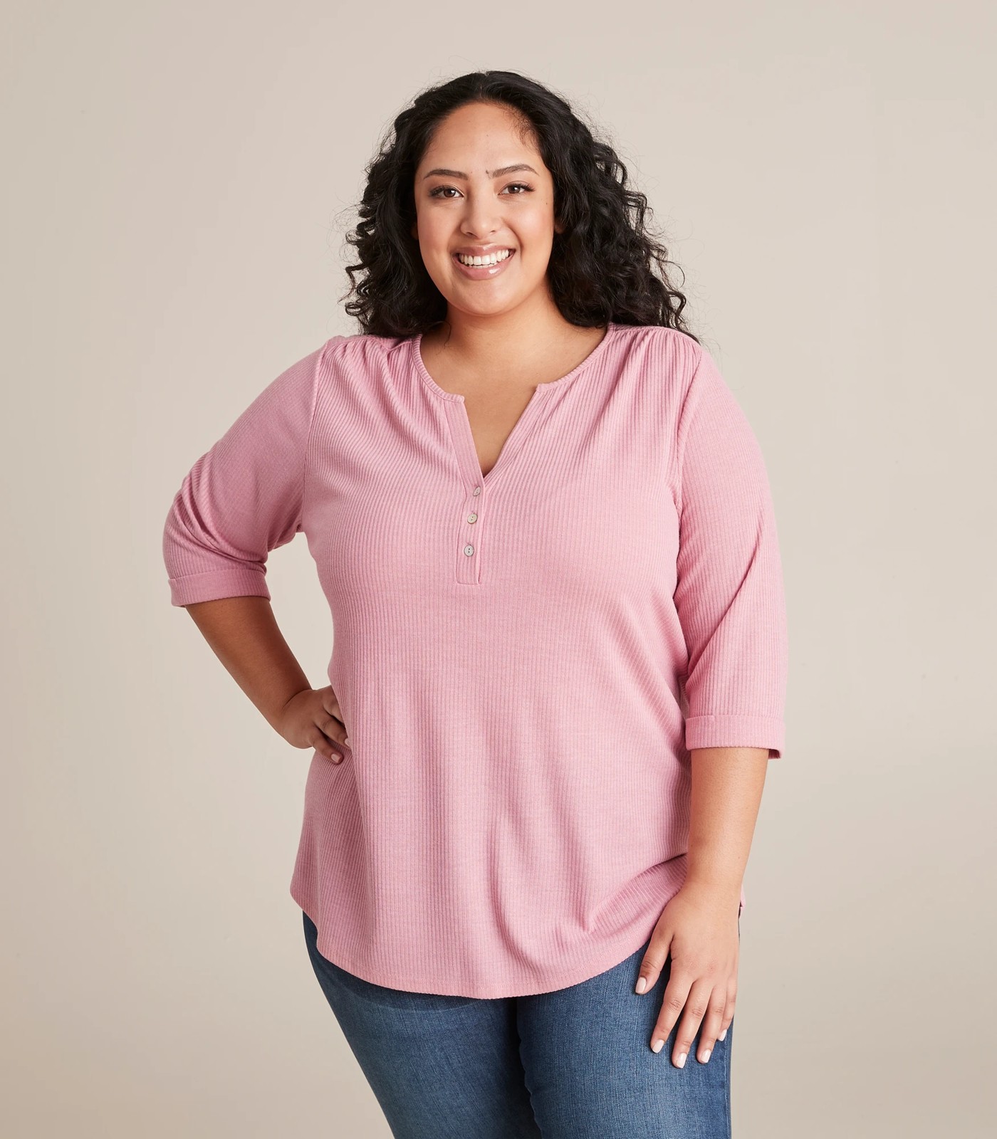 Comfortable, practical and perfect for any season, our Curve henley top will be one you will want in every colour. It features an open neckline with button down front for easy access, 3/4 cuffed sleeves and a relaxed fit for comfort.
