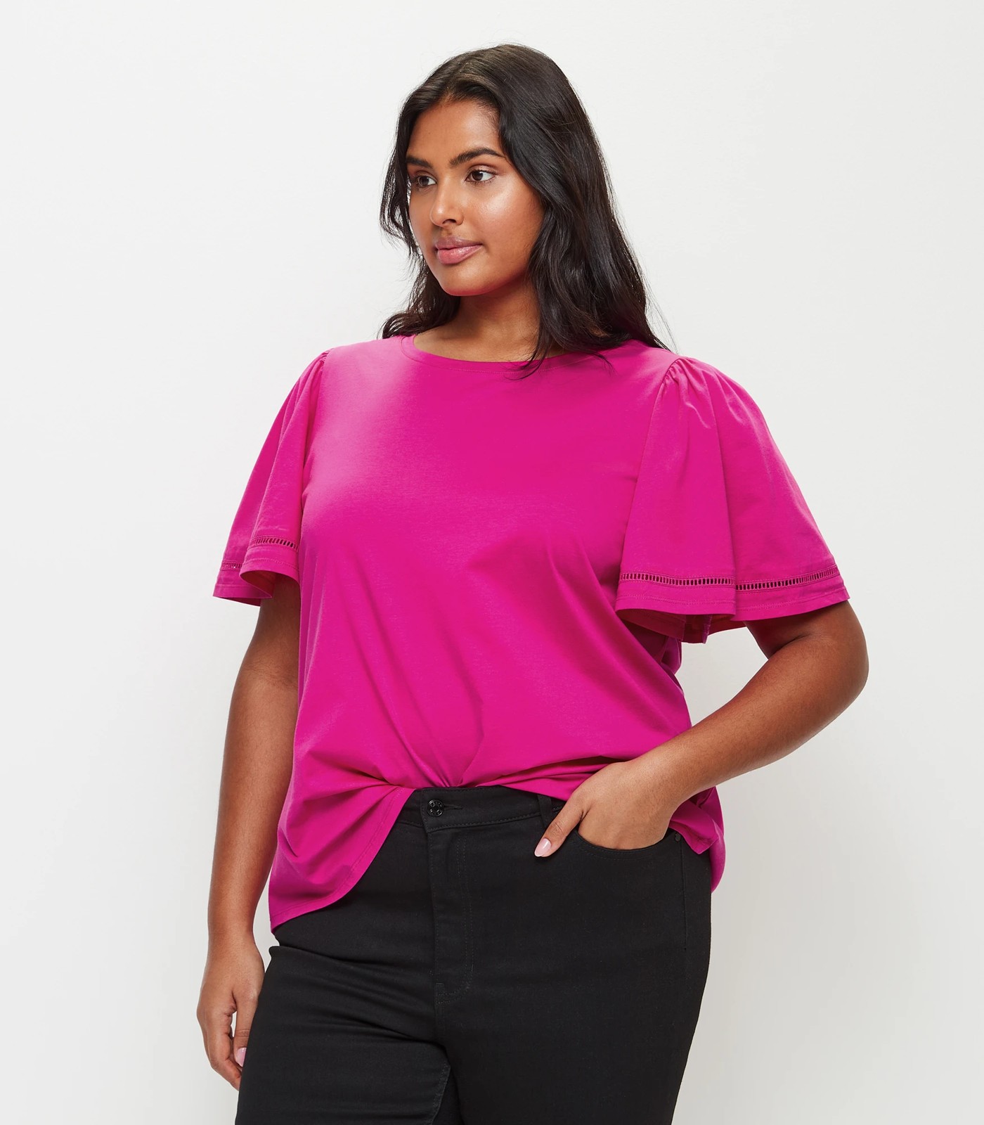 Feminine and flowy, the Curve scoop neck top is made from a breathable cotton material and features a scoop neckline, short sleeves and a straight hemline.