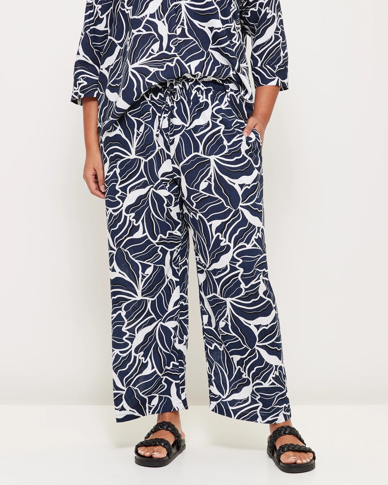 Look effortlessly chic in these navy and white Curve wide leg pants. Cut from a lightweight viscose/linen blended fabrication, these wide leg pants features an all over abstract floral print and an elasticated waistband. Perfect for the office or a night out, our Curve wide leg pants are sure to become your wardrobe favorite.