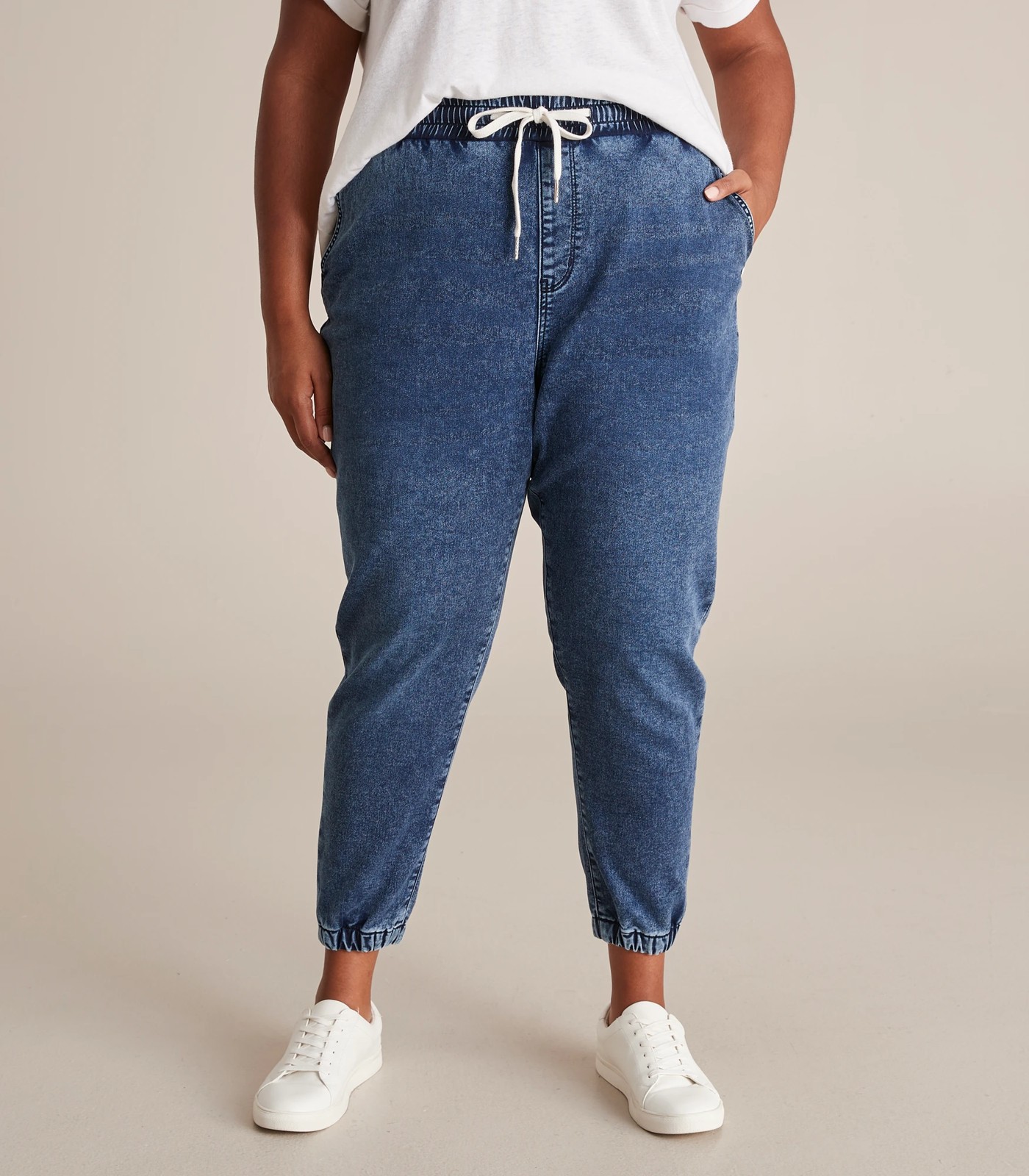 A relaxed pair of pants that are perfect for everyday wear, the Curve wonder denim jogger pants feature an elastic waistband for an easy pull on, pockets for all of your essentials and elastic cuffs for the jogger look.
