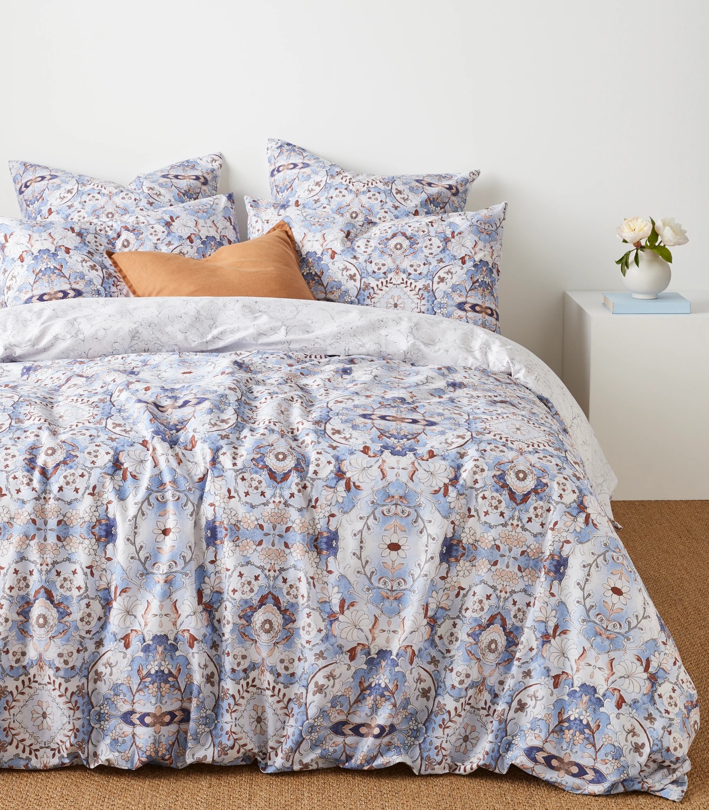 Transform your bedroom into a serene retreat with our Cyrus Woodblock Quilt Cover Set. Crafted from soft and breathable cotton, this set offers comfort and breathability for a restful night's sleep. The floral woodblock print in soothing blue tones brings a sense of tranquillity to your space, adding a touch of natural beauty to your bedding. Embrace a harmonious blend of comfort and elegance with this stylish quilt cover set, and enjoy a peaceful and stylish sanctuary in your home.