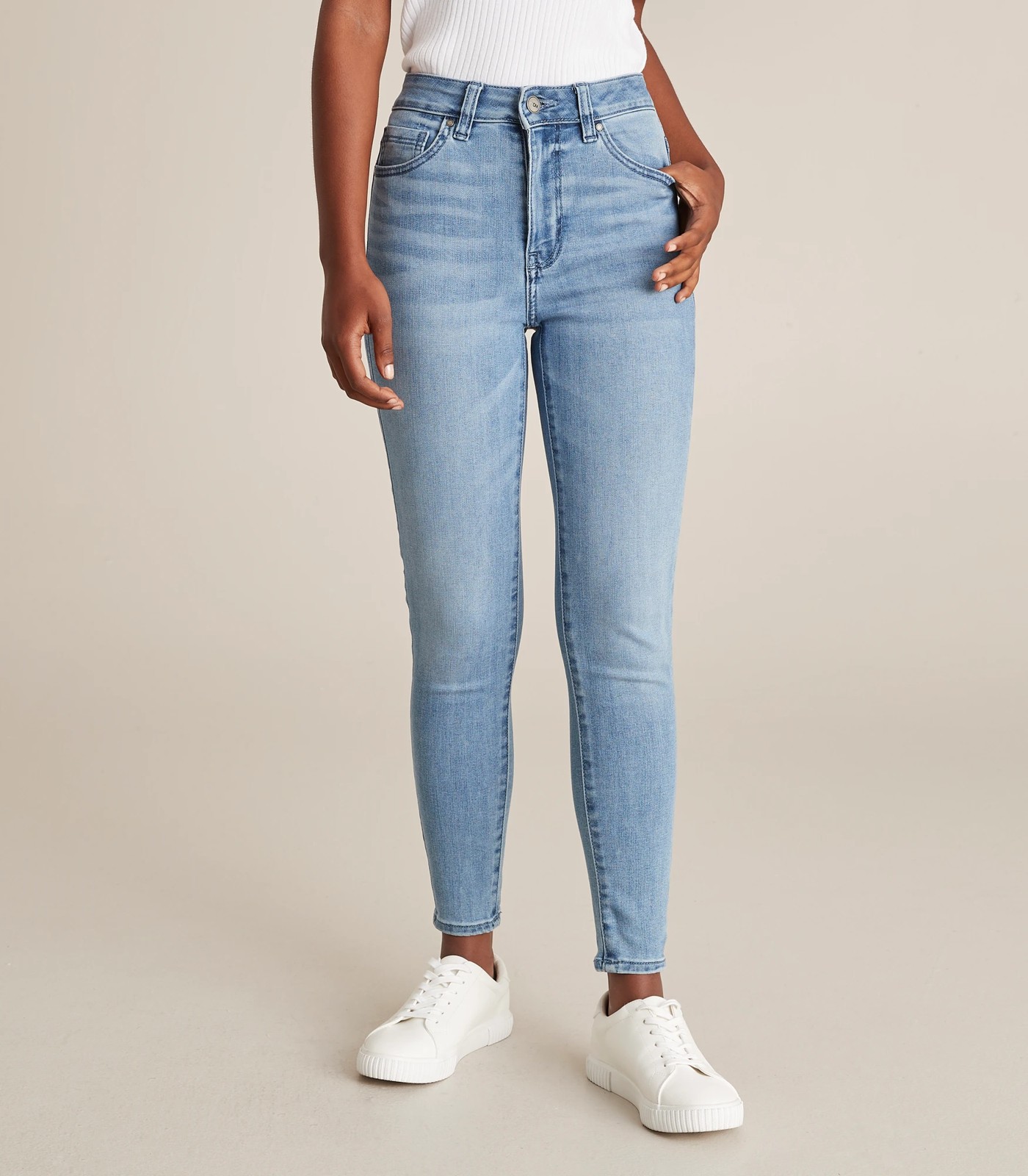 Comfort meets style with these high waisted skinny denim jeans from the Dannii Minogue Petites range! The high waist ankle length skinny jeans have a high rise fit, are crafted from stretch denim and have a leg profile that is fitted through the thigh, knee and ankle to create a skinny silhouette.