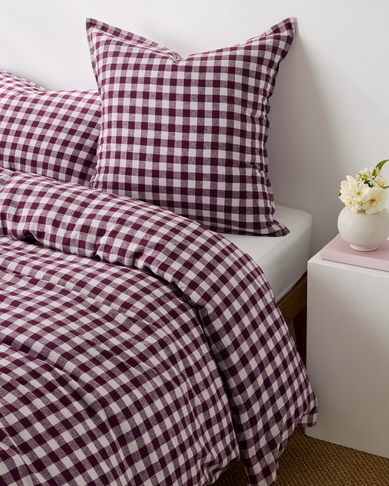 Transform your bedroom style with the Darby Gingham Linen/Cotton European Pillowcase in Berry. Made from a blend of linen and cotton, this pillowcase features a delightful gingham pattern and a sumptuously vintage-washed finish for added softness. Its breathable fabric ensures you stay comfortable throughout the seasons, keeping you cosy in winter and cool in summer. Plus, it's easy to care for with machine washable convenience, making it ideal for daily use. Enhance your sleep space—get yours today and complete the look with the matching Darby Quilt Cover Set available separately.