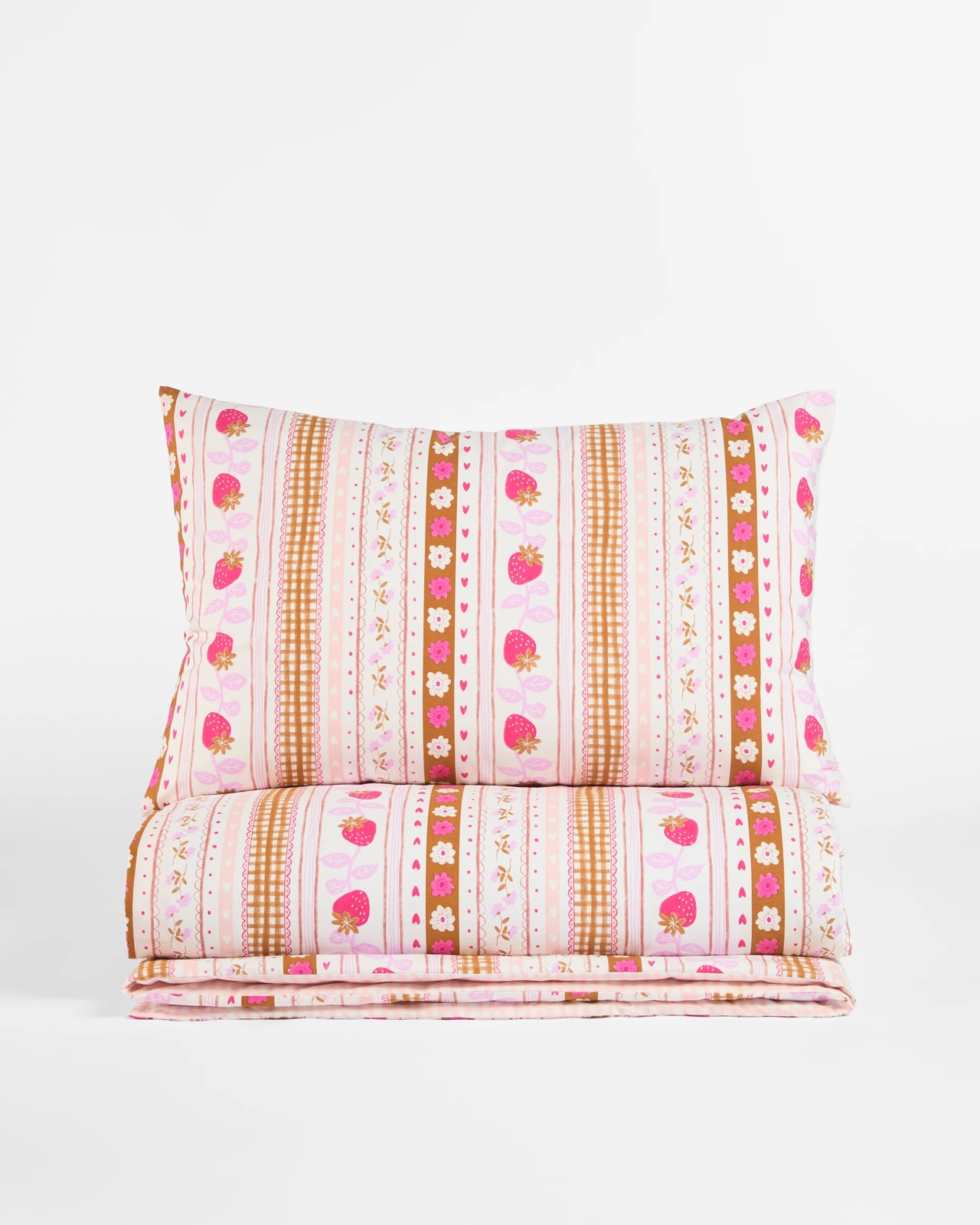 Turn bedtime into a joyful experience with the Delilah Floral Australian Cotton Quilt Cover Set in warm amber. Designed from pure Australian cotton, this set delivers softness and lasting comfort that your child will enjoy night after night. The lovely floral print adds a playful touch to any bedroom, while the reversible design means two delightful looks in one – simply flip the cover for a fresh style. It’s easy to wash and made for cosy comfort throughout the seasons. For a coordinated space, pair with other Delilah floral bedding pieces available separately. Treat your child to a room that sparks happiness. Add the Delilah Floral Quilt Cover Set to your home today.