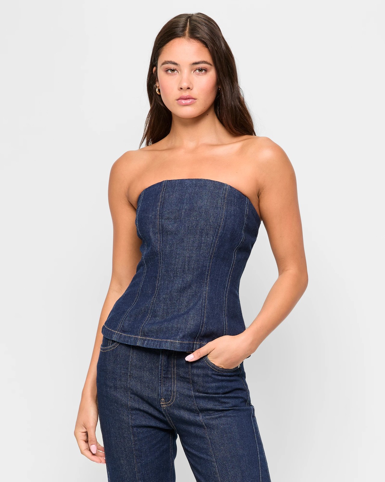 The Lily Loves denim bustier is the ideal piece for those who appreciate both fashion and comfort. Made from quality cotton, it features a structured fit that complements your figure beautifully. The dark indigo blue colour adds a sophisticated touch, while the strapless design with a straight neckline exudes contemporary style. With front inner sticky tape for reliable hold and detailed panelling throughout, this bustier ensures both style and security. Complete with a slightly curved hemline and a back centre zip closure, it's a standout addition to any wardrobe.