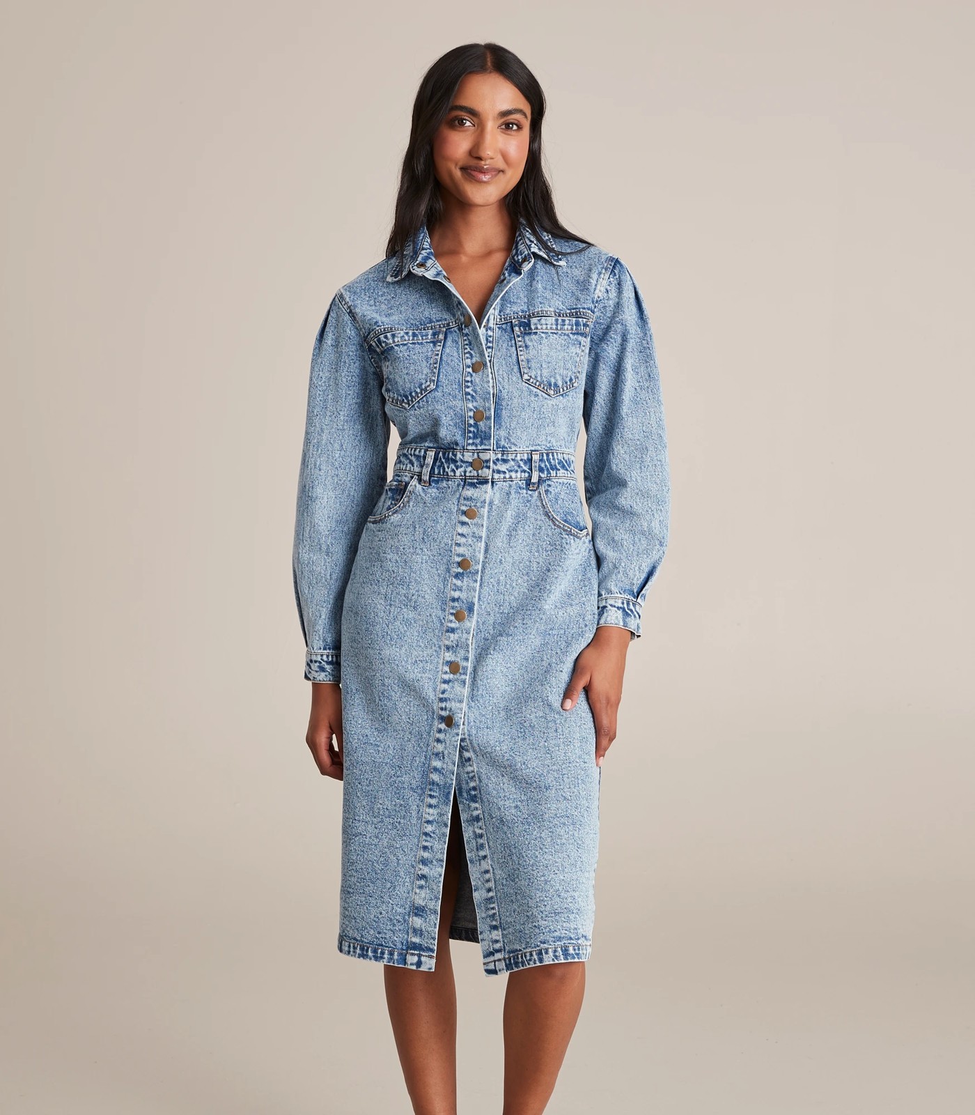 A great addition to any wardrobe, the denim midi shirt dress will be able to worn all year round. It features a collared neckline, a button through front for easy pull on and contains a breathable cotton fabrication.