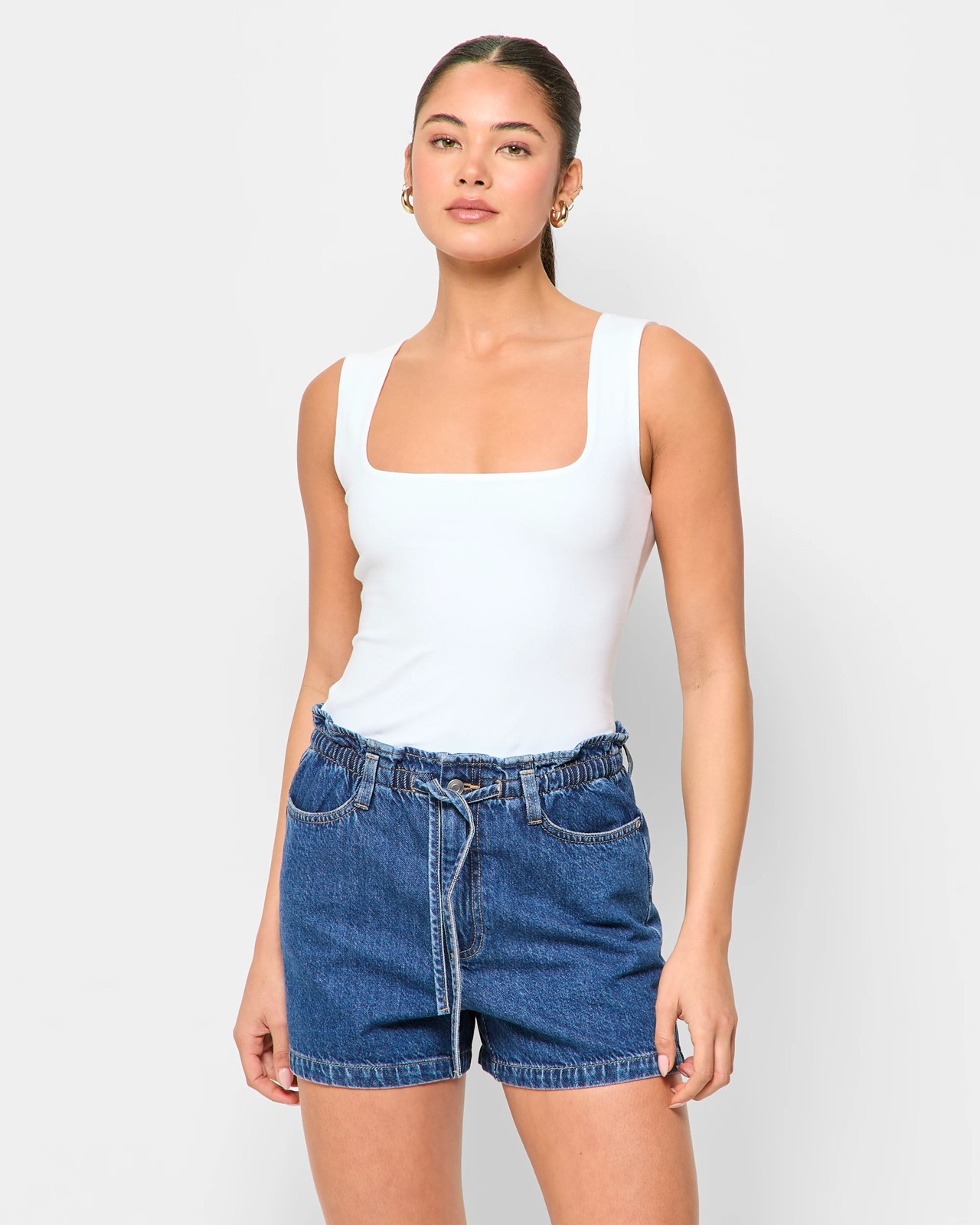 Denim Paperbag Shorts - Lily Loves - Iconic Dark Indigo