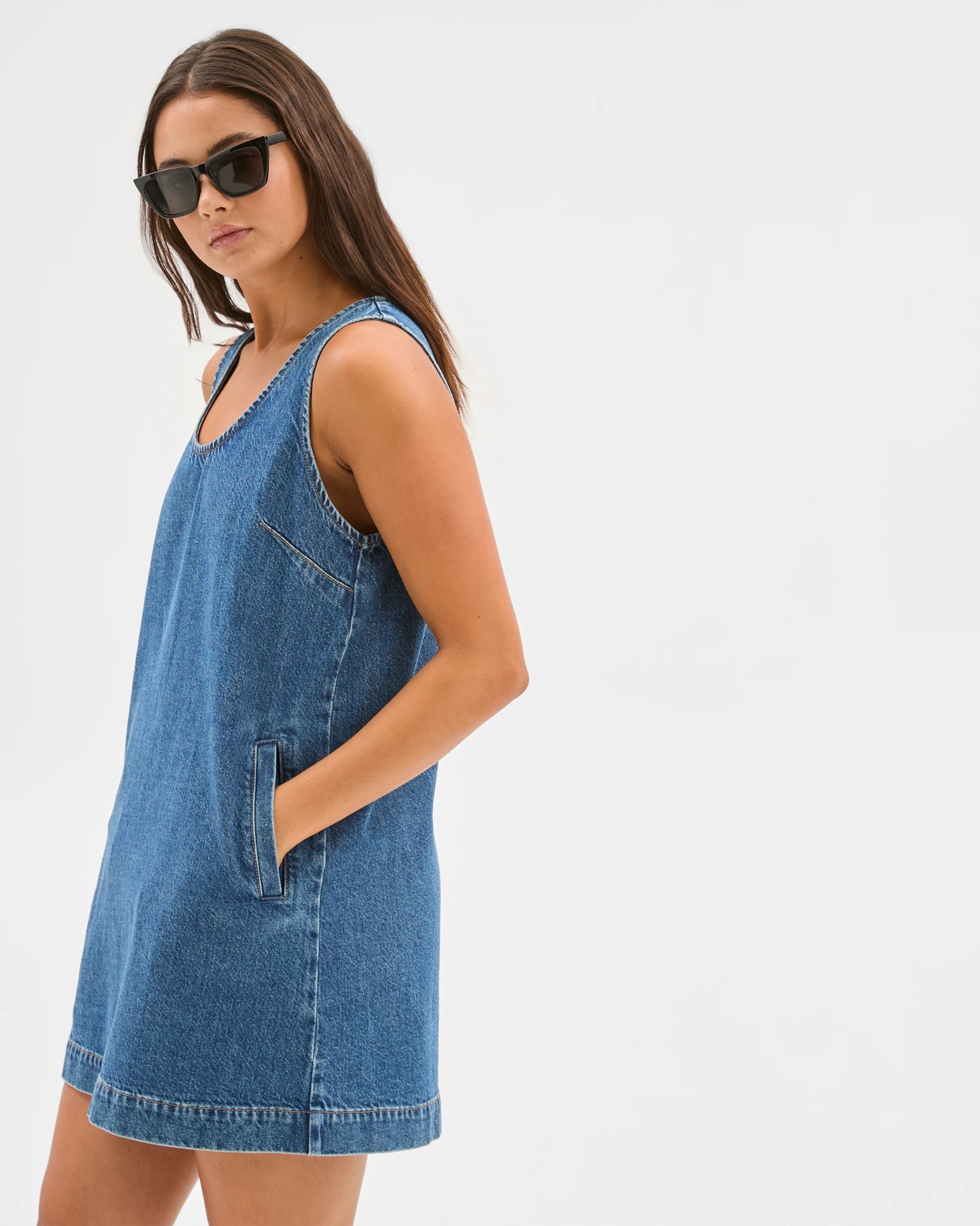Step out in style with the Denim Shift Dress from Lily Loves, designed for comfort and everyday charm. Its mid-blue hue makes pairing simple, whether you're dressing up for brunch or keeping it casual. The sleeveless shift style and scoop neckline create a modern look that works for any wardrobe. Added chest darting and practical side pockets make this mini dress both attractive and useful. The regular fit allows you to move with ease from morning through night. Make this versatile dress your new favourite and enjoy the perfect blend of fashion and comfort.