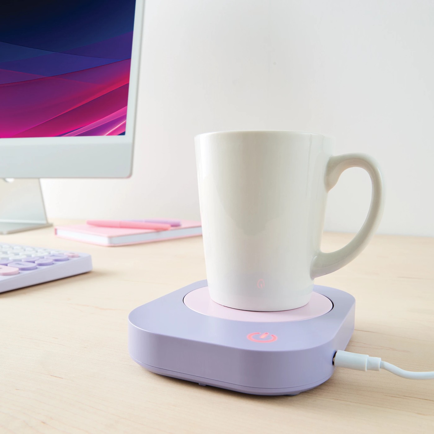 Enjoy your favourite drink just the way you like it with this Desktop Mug Warmer. Perfect for anyone who spends long hours at their desk, this handy gadget ensures your beverage stays warm for up to eight hours. Designed in an attractive purple hue, it adds a touch of fun to your workspace. It is compatible with various mug materials, including stainless steel, glass, ceramic and porcelain. With three adjustable temperature settings, your drink will always be at the perfect sip-ready temperature. This mug warmer is easy to use, coming with a USB-C cable for convenient power. Don’t let your drink go cold – upgrade your desk today!