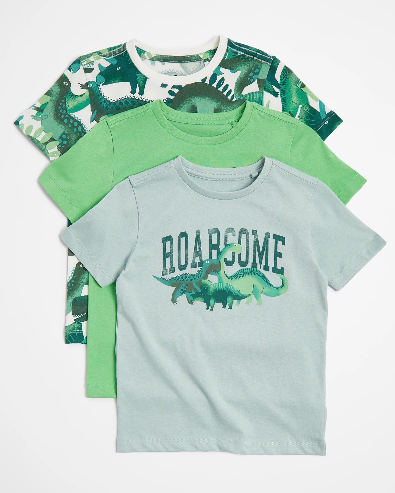 Treat the boys to something special with this 3 Pack of Dinosaur T-shirts. Crafted from a cotton rich fabric, these Regular fit T-shirts boast a ribbed crew neck, short sleeves and straight hem. Decorated with various dinosaur prints in green multi, these T-shirts are sure to spruce up any little one's wardrobe.