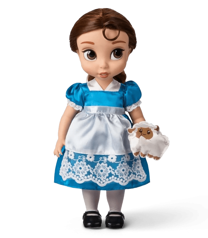 Bonjour! Belle from Disney's Beauty and the Beast is envisioned as in her younger years, before she encountered the Beast and his enchanted castle. This updated edition doll is dressed for a village visit in a lace-trimmed satin provincial dress.