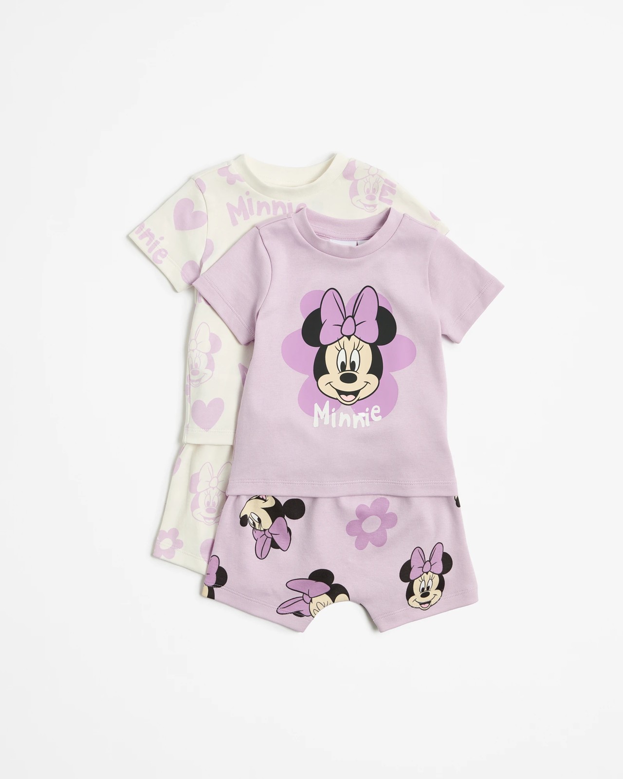 Make bedtime fun with this delightful set featuring everyone's favourite character, Minnie Mouse. Made from soft cotton, this 2-pack pyjama set is comfortable and perfect for a restful night. Each set includes short-sleeved tops with ribbed crew necks and matching shorts with an elastic waistband. One top features a cute Minnie Mouse print on the front, while the other showcases an all-over pattern. The regular fit ensures ease of movement, making it a lovely addition to your child's nightwear collection.