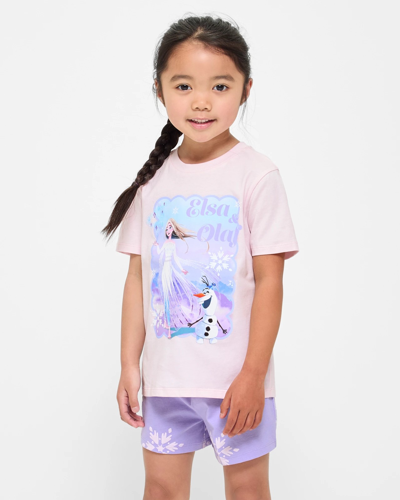 Treat your little one to a dreamy night's sleep with this delightful Disney Frozen cotton pyjama set. This charming two-piece ensemble features a top adorned with a vivid Frozen print and coordinated all-over print shorts. With a ribbed crew neck and short sleeves, it ensures ultimate comfort, while the elastic waistband provides a perfect fit. Add some magic to bedtime and pick up this adorable pyjama set now!
